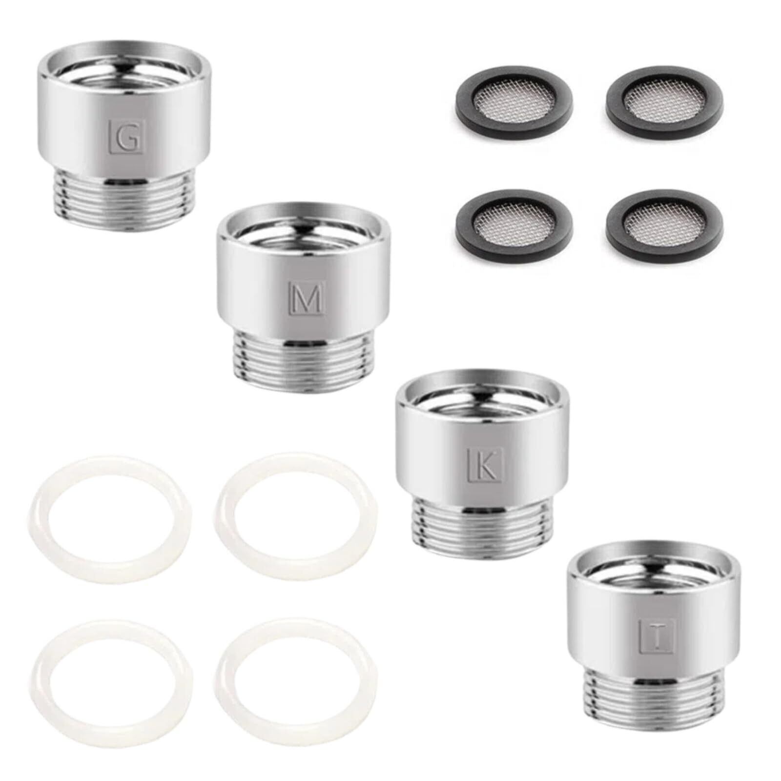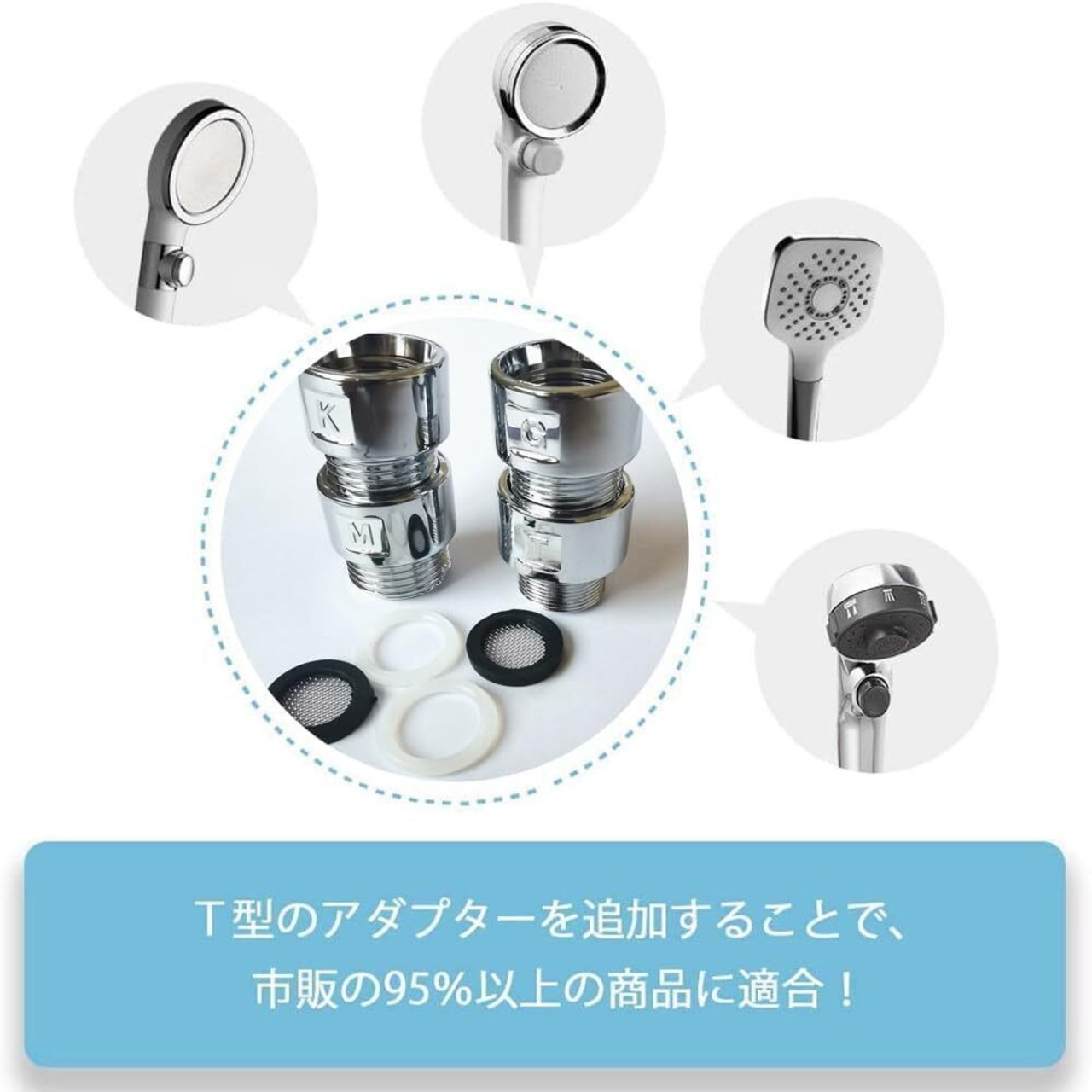 シャワーヘッド アダプター アダプターセット 4個セット シャワーヘッド接続用アダプター 各社ホース用アダプター 水漏れを防 取付簡単 シャワーホース用 シャワーヘッド用 シルバー (KMGT)