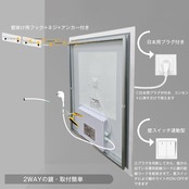 【設置簡単な壁掛け鏡】組立完成品で届き、日本用プラグが追加されたウォールミラーで、コンセントに挿すだけなので業者に頼まなくても取り付けられます。新築祝いのプレゼントとしてもおすすめです