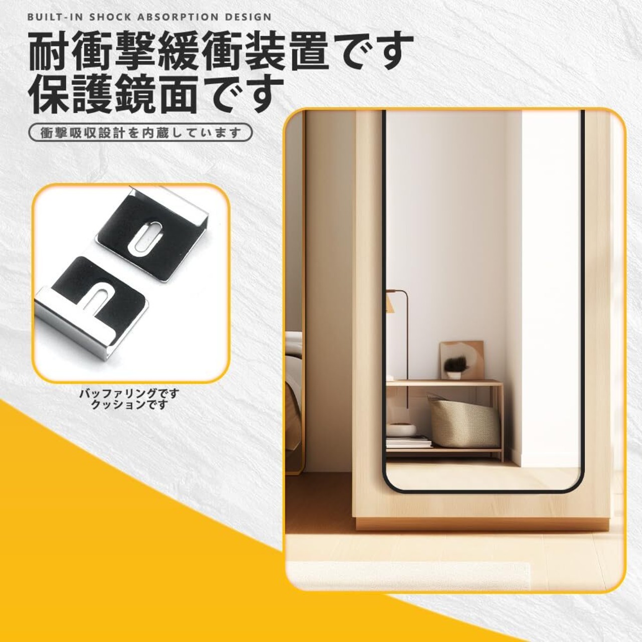 ガラスを傷つけない設計 鏡やガラス面に優しい滑らかな表面加工。設置しても美観を損なわず、空間の雰囲気を保ちます。
