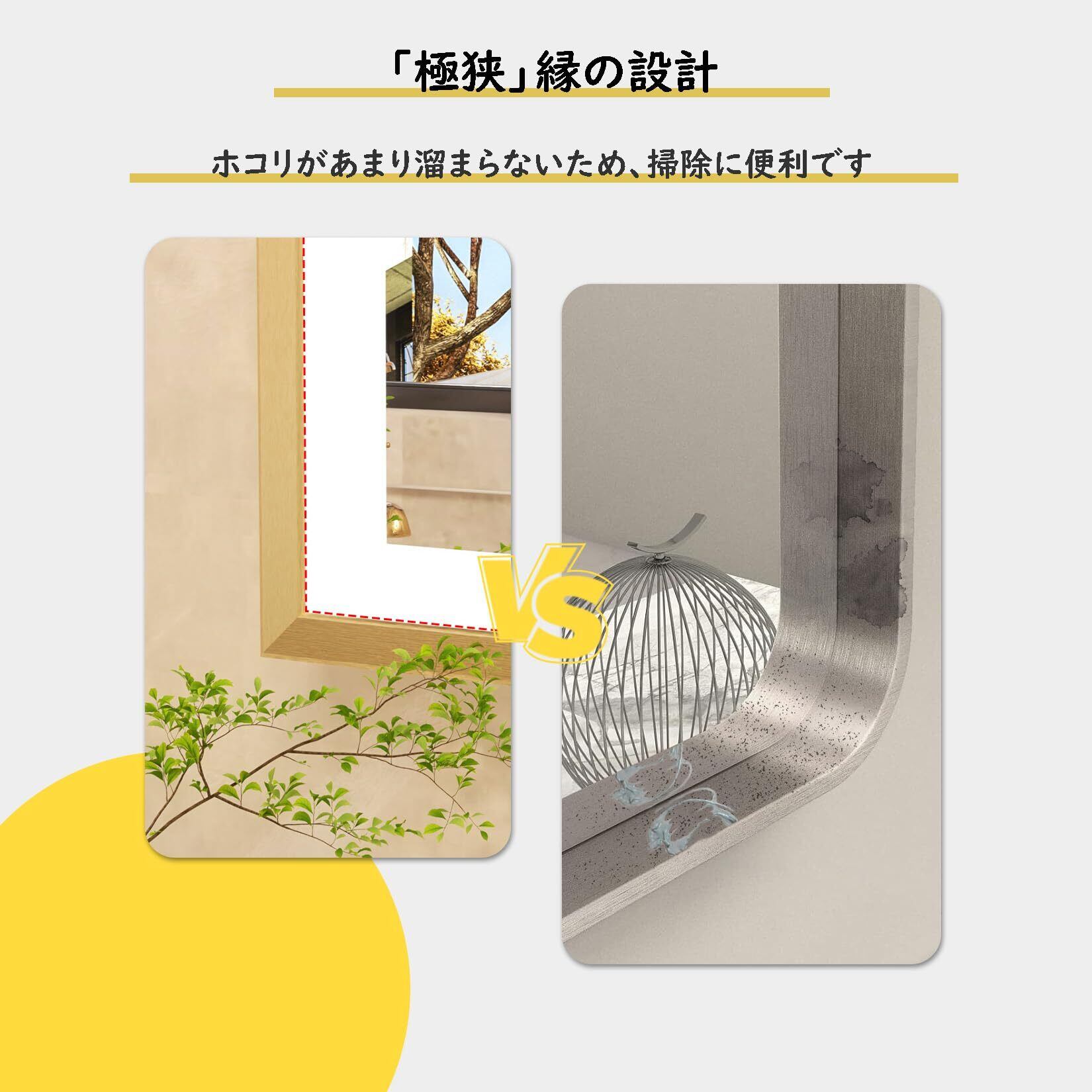 【高品質な材質】高鮮明度の銀メッキミラーを採用していて、アルミメッキミラーより圧倒的に明るく、キラキラ光ります。色忠実度≥95%で、肌の色を忠実に映し出してくれます。耐湿・耐食で耐久性に優れているため、多湿の場所にも使えます