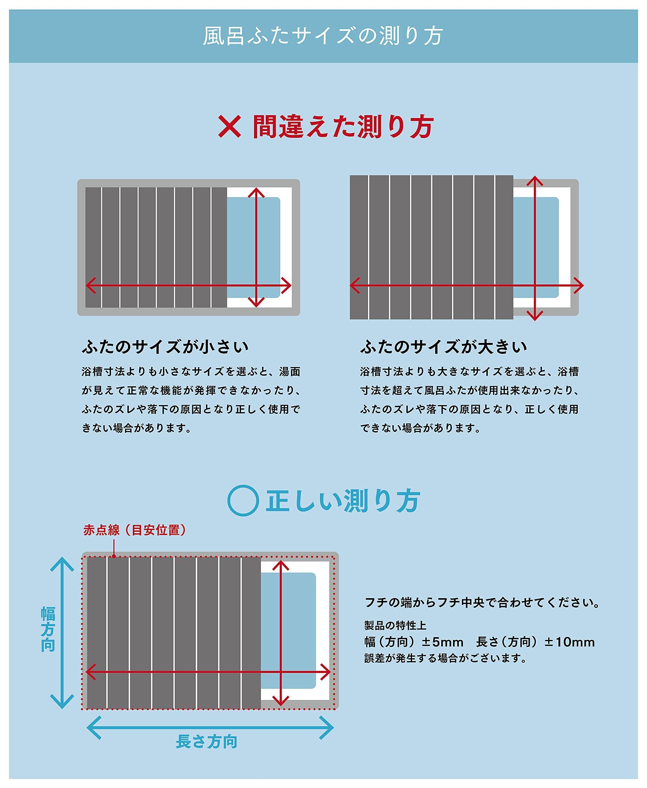 ■風呂水洗浄剤(塩素殺菌等)、浴室用洗剤(アルカリ性等)によって風呂ふたが傷んだり、変色、劣化しますので使用しないでください。