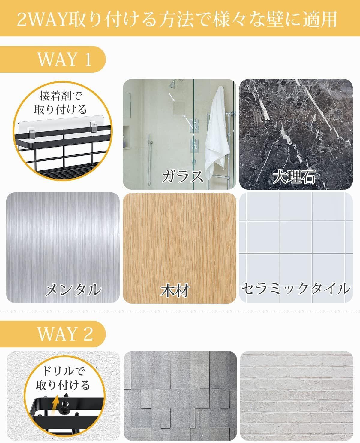 ✿【大容量の3個セット&2WAY取り付ける方法】バスラックは大容量の3個セットで収納力が高く、お風呂で必要なあれもこれもまとめて置くことができます。超強力テープで取り付けるので壁をキズつけず賃貸のお家でも気兼ねなくお風呂収納を増やしていただけます
