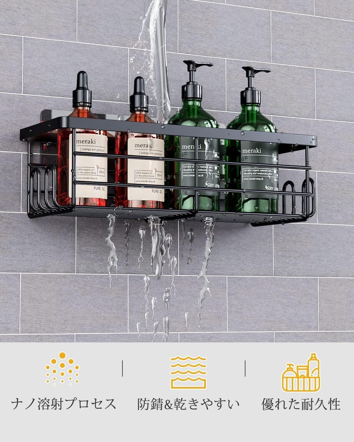 Uamector 浴室用 ラック お風呂ラック 強力粘着固定 お風呂 収納 バスルームラック バスケット 浴室 収納 ラック 耐荷重20KG ステンレス製 シャンプーラック シャワーラック風呂場洗面所収納壁掛け棚 3段式(ブラック)