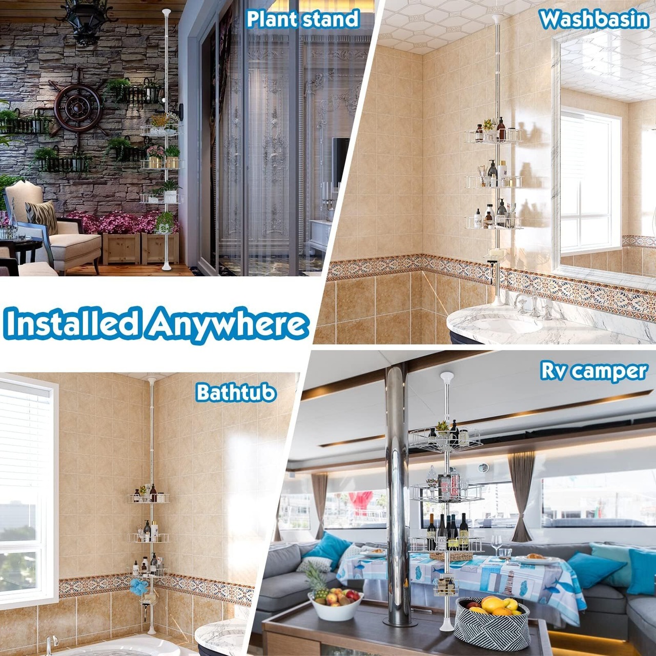 とどこにでも取り付けられます - 各コーナーシャワーキャディには24ヶ月のが付いています。 ご連絡いただければ交換または返金いたします。 ツール、材料、壁の穴あけなしで簡単に組み立てられます。 テンションシャワーキャディを設置する予定のスペースを測り、指定されたエリアに適切なポールを使用できるようにしてください。