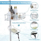 バスルーム ラック, 4つの調節可能なバスケット付き浴槽ロッカー, 97.5-312.5 cm ロッド付き浴室スタンド シャンプーを置く, 銀