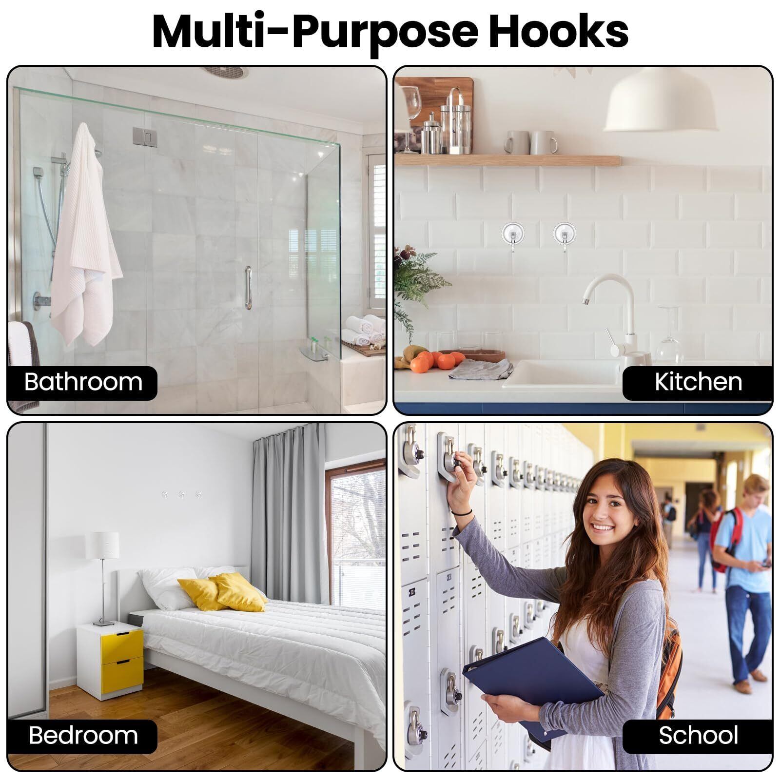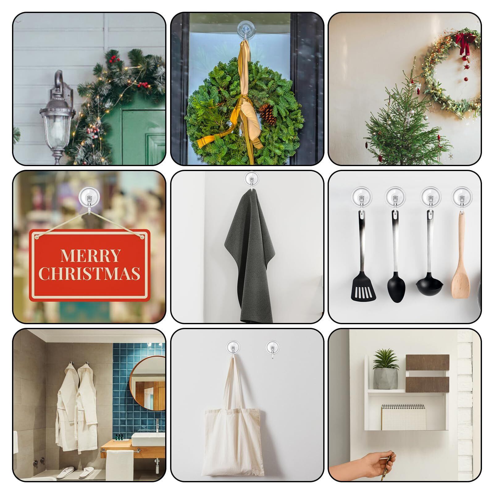 【 多用途】キッチン用品やバスルームの必需品を整理するのに最適です。タオル、スポンジ、バスローブ、スプーン、手ぬぐい、エプロン、さらには花輪やクリスマスの飾り付けなどのお祝いの装飾を掛けるのに最適です。 窓、鏡、ガラス、金属、正面ドア、セラミックタイル、その他の非多孔質の表面にしっかりと接着しますが、多孔質、でこぼこ、粗い表面には適していません。