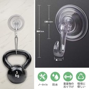 【仕様】 吸盤フック4個入り、高さ9cm直径6.8cm、耐荷重5kg。 ご注意:金属、大理石、タイルなどの滑らかな面に固定してください。 模様のあるタイル、壁紙など凹凸のある面には吸着させないでください。