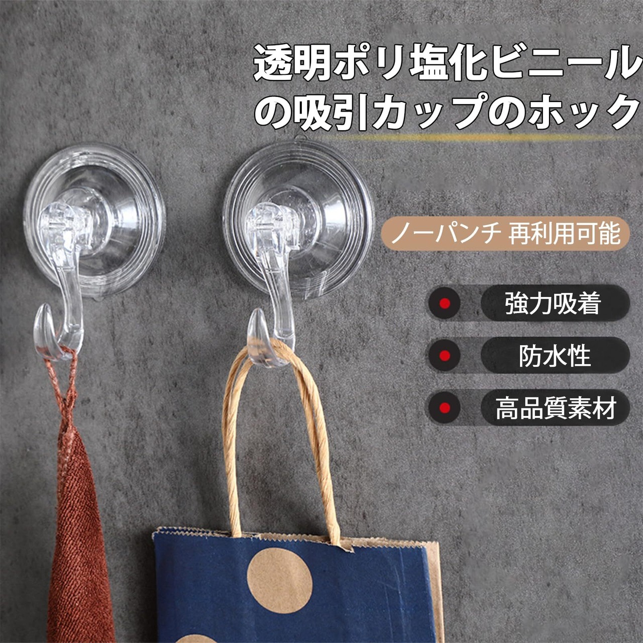 【使いやすい】フックはポリ塩化ビニールとPC材料で作られ、非常に耐久性があり、濡れても安全です。強力吸盤防水機能付き、湿度の高い浴室でも使いやすいです。