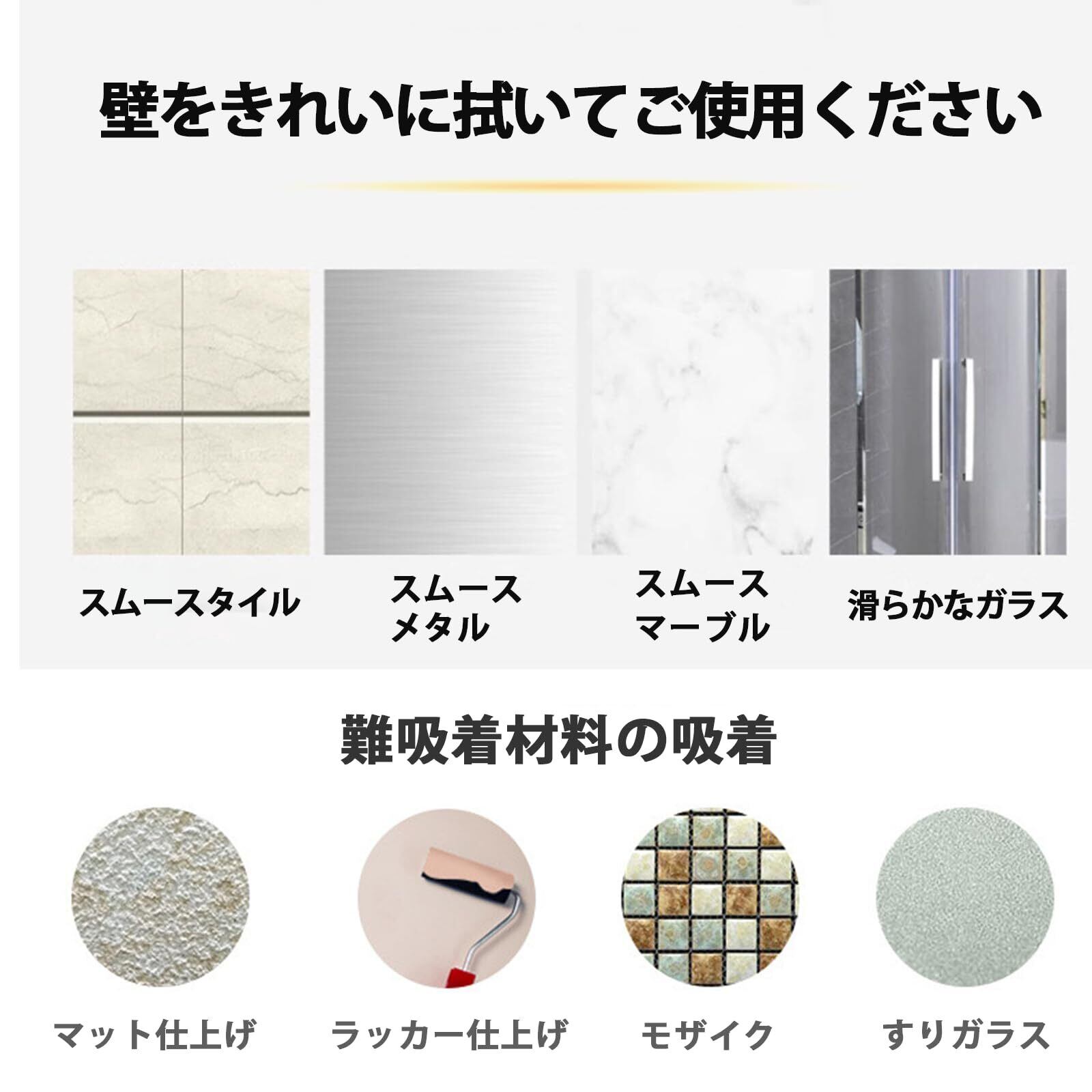 【再利用可能】貼る位置を変える時、製品を取り外して、貼る壁を乾かすだけで、うまく貼れます。お客様のニーズに応じて、好きな位置に貼り付けることができます。本製品は、浴室、台所用品、その他の濡れた場所で使用できます。