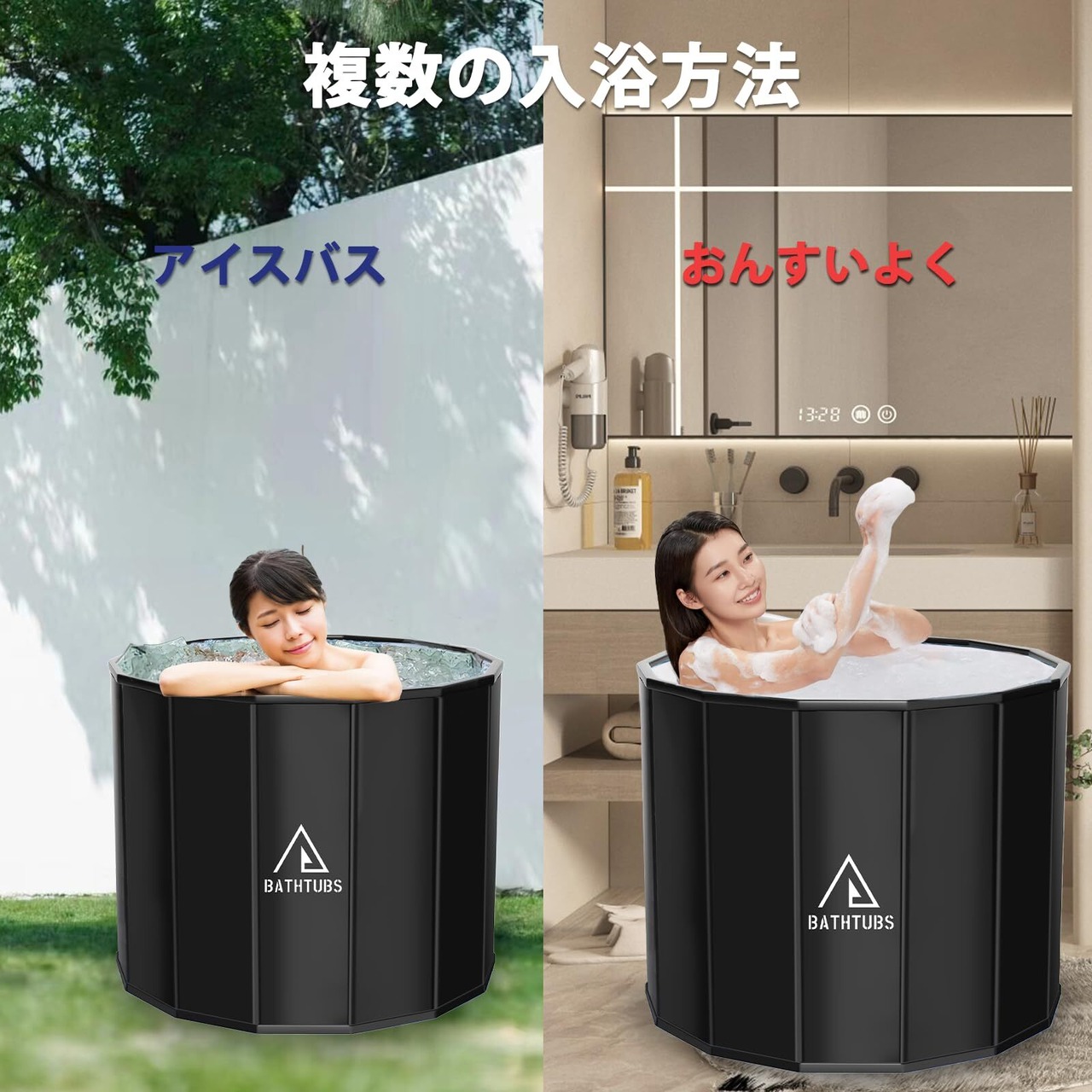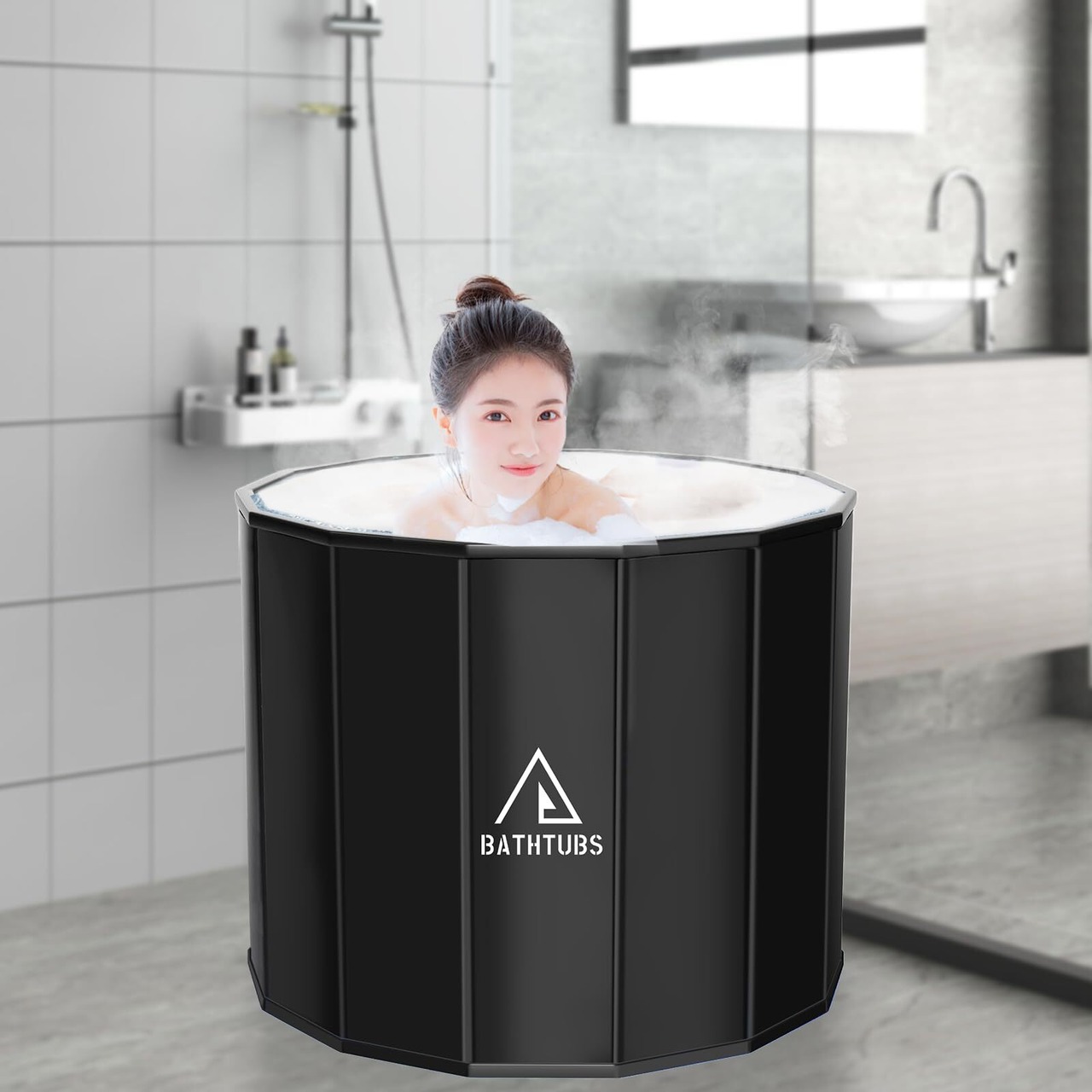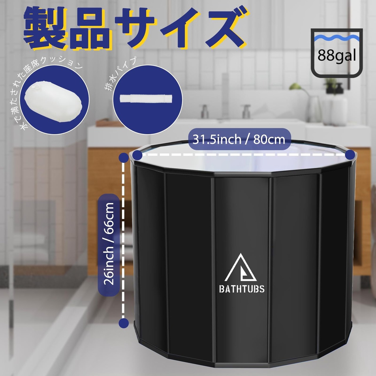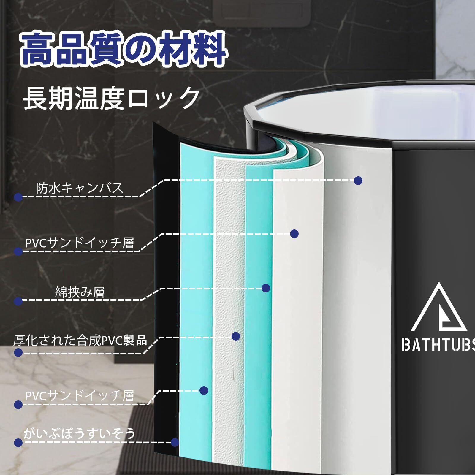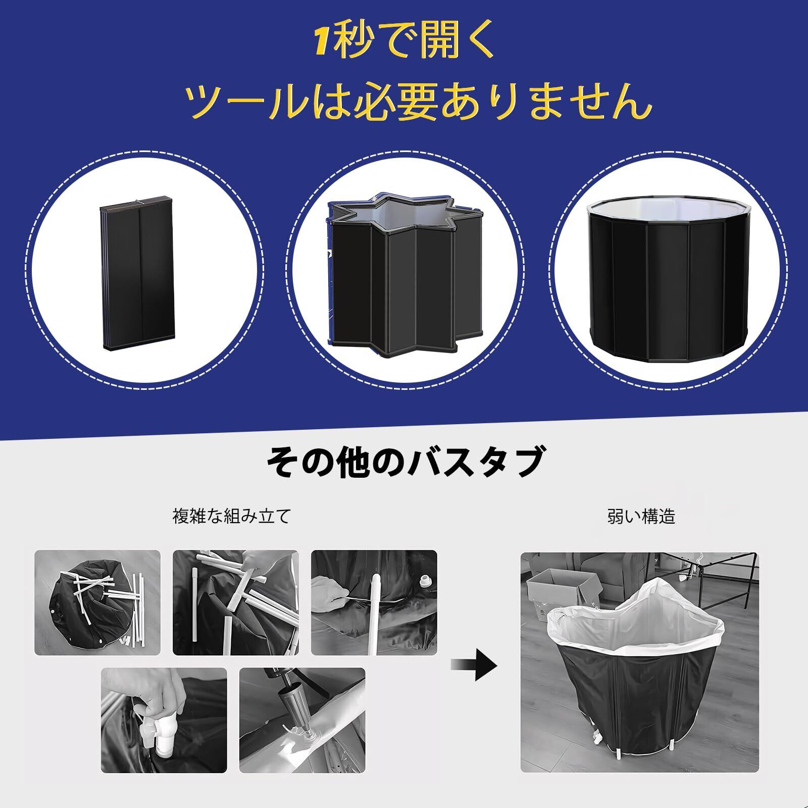 折りたたみ浴槽 ポータブルバスタブ 組立不要 折り畳み風呂 簡易風呂 露天風呂 バケッツ 簡易浴槽 浸漬式 SPA 丸型 保温 コンパクト 収納便利 大人 子供 家庭用 (ブラックA, 80x66cm)