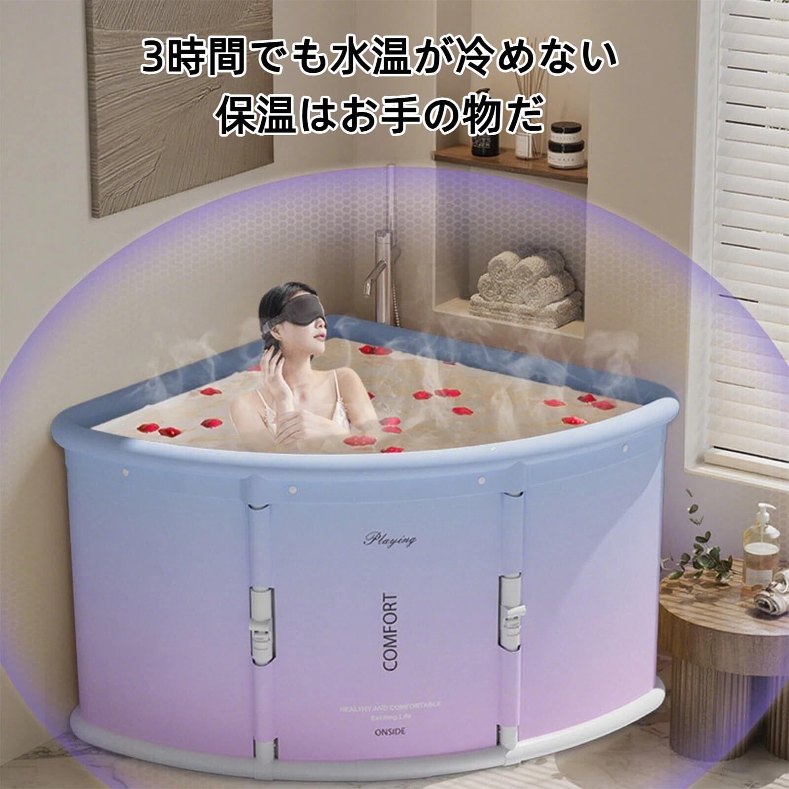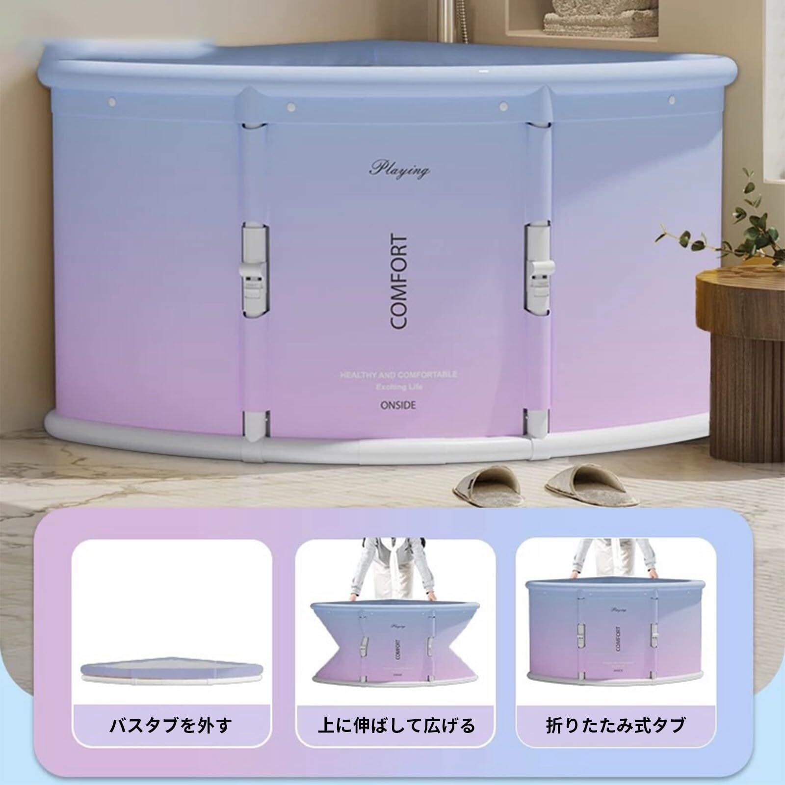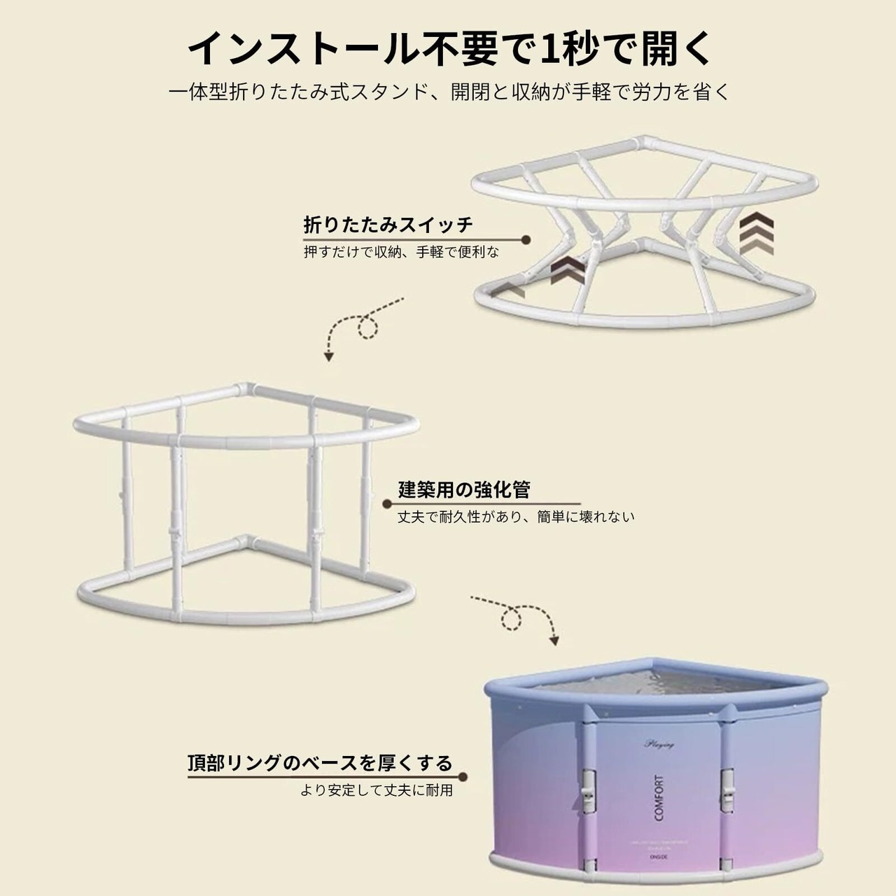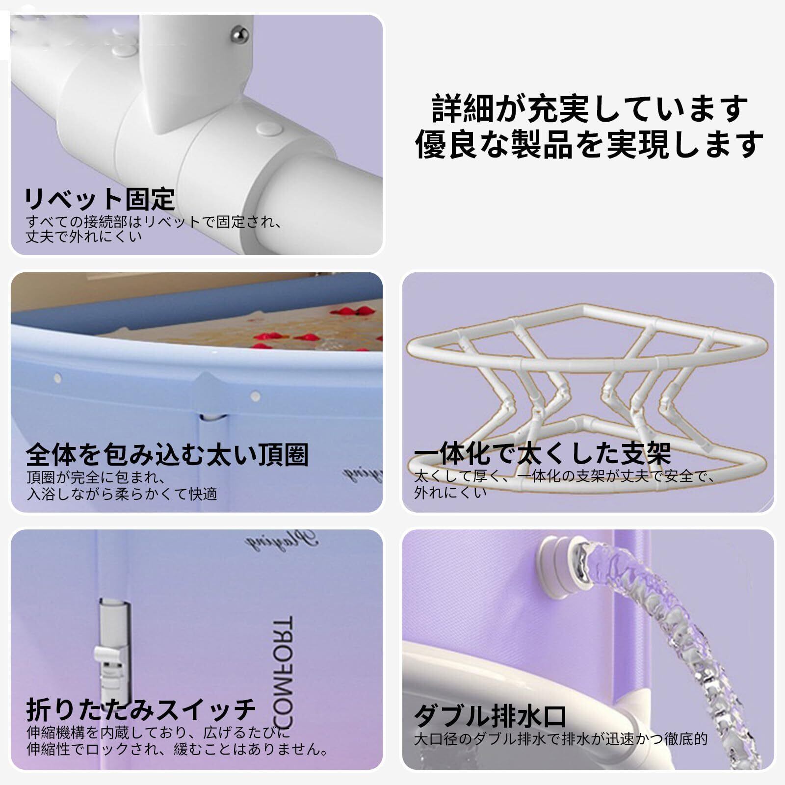 【より良い断熱性能】ポータブルバスタブは厚くなった環境に優しい素材の6層で作られてい。 高密度断熱素材を使用し、冷気を防ぎ、断熱効果を高めます。非毒性、耐久性、高密度、環境にやさしいPVC素材で作られています、肌に柔らかく、触感良く皮膚に無害です。丈夫で耐久性があります。