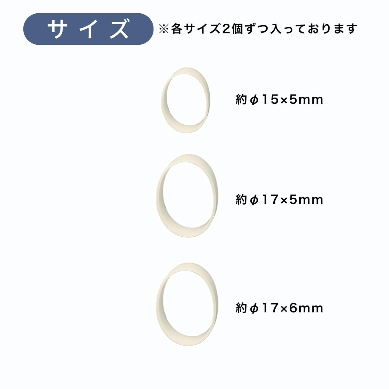 サイズは3種類、各2個ずつ入っています。【サイズ】約φ15×5、φ17×5、φ17×6mm