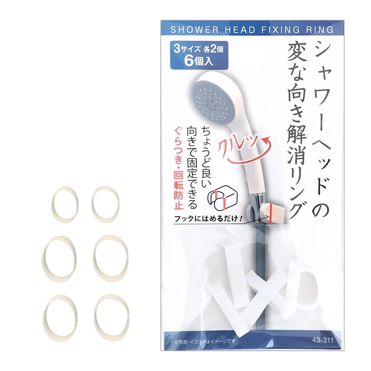 【在庫限り】シャワーヘッド 回転防止ゴム 3サイズ×各2個 シャワーヘッドずれ防止 ちょうど良い向きで固定できる 簡単取り付け