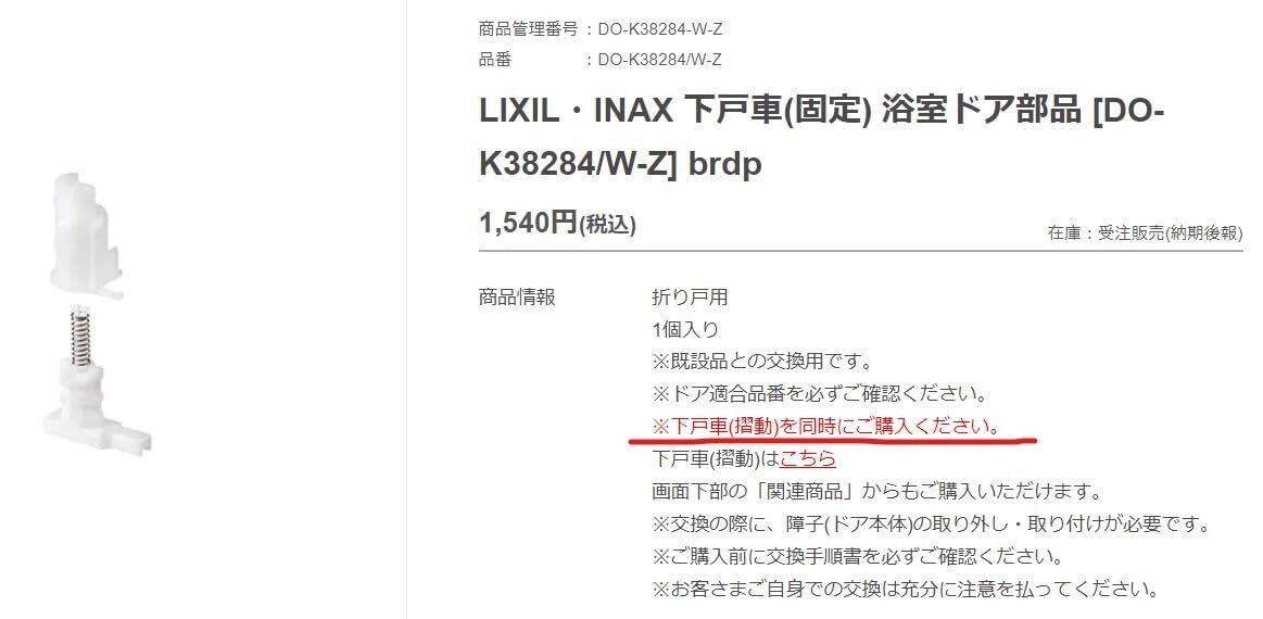 ニットバス 浴室 中折れドア INAX イナックスLIXIL リクシル 部品 パーツ 下戸車 ( 固定側 、可動側 )