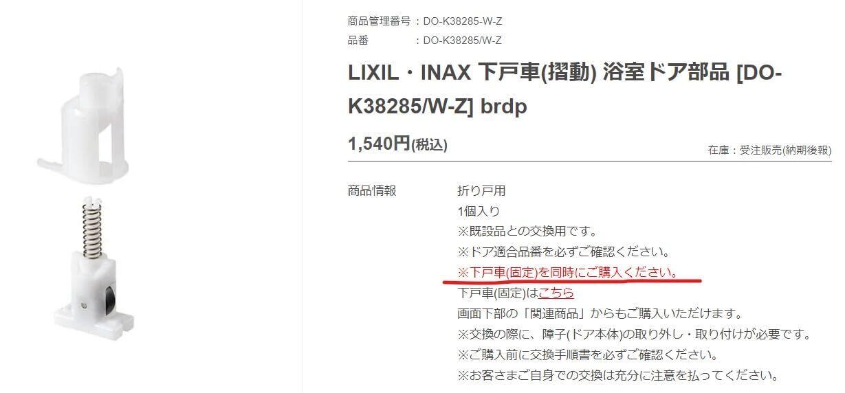 【特価セール】DO-K38284/W-Z 、 DO-K38285/W-Z ユニットバス 中折れドア INAX用 イナックス L I X I L用 リクシル 部品 パーツ 下戸車 (固定側 、可動側) ※メーカー注意書き※下戸車(固定側)と(可動側)を同時にご購入ください。左右兼用のセット(逆勝手の場合、組換えて使用)