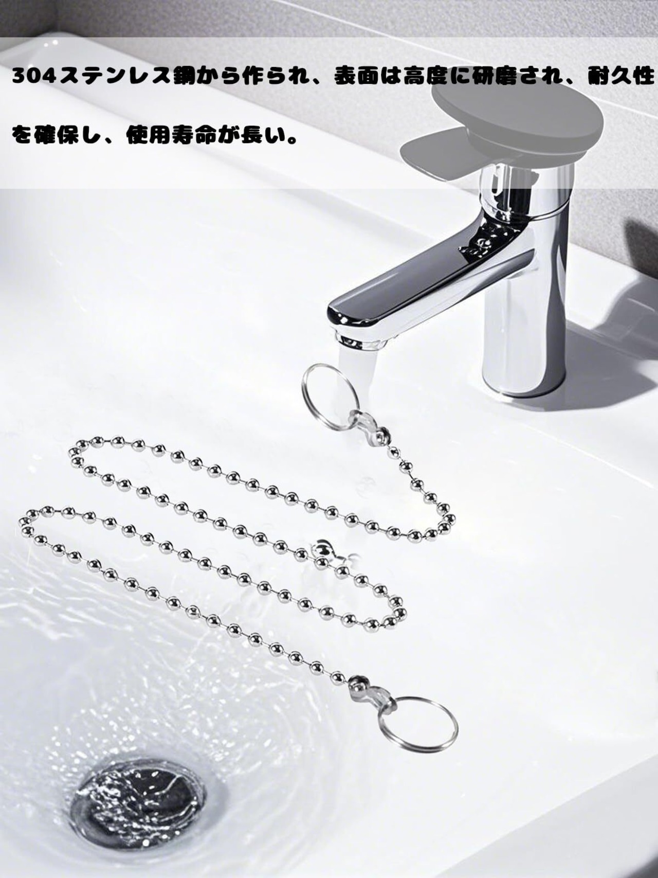 1.【製品サイズ】全長約74cm、チェーン長さ約67.5cm、玉径約4.5mm、リンク外径約2cm。 2.【錆に強く腐食に強く、長持ちする】304ステンレス鋼材質を採用し、長期にわたって水に接触しても錆びたり変色したりせず、長持ちする。 3.【紛失防止ステンレスチェーン設計】チェーンの両端に二重環がありは浴槽栓と排水口にしっかりと接続でき、栓の脱落や紛失を防止し、ワンタッチで引っ張ることができ、排水がより便利で、使用がより安心できる。軽量化設計を採用し、使用しないときはチェーンをフックに簡単にぶら下げることができ、スペースを節約し、取りやすい。 4.【清潔で衛生的で、美しく実用的】滑らかなステンレス鋼表面に水垢が残らず、日常的に洗い流すことで清潔を保つことができる、シンプルなメタル質感がバスタブ全体の美しさを高めます。 5.【幅広い適用範囲】バスルーム、洗面台、シンク、キッチンなど幅広いシーンに適しています。
