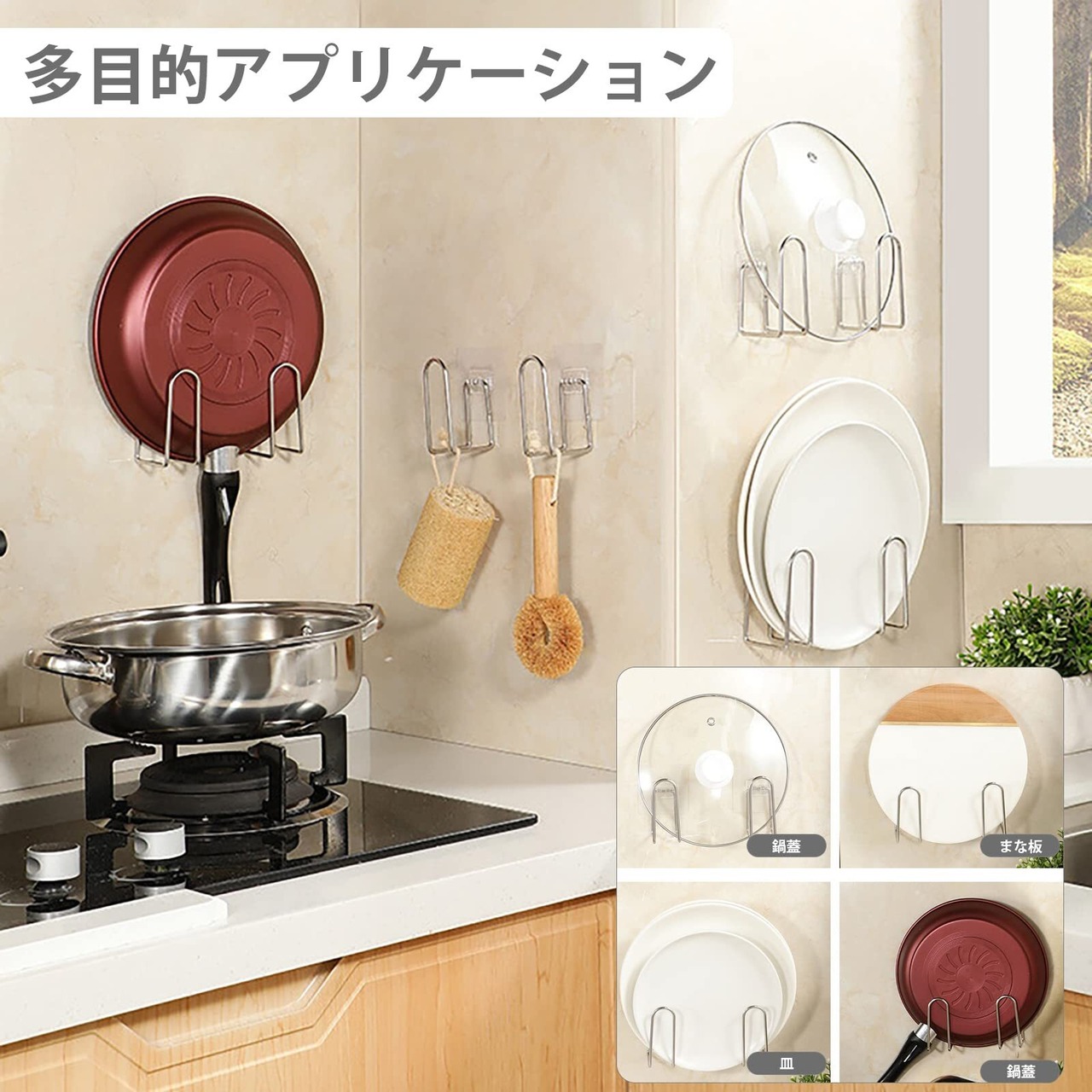 フック 収納 お風呂 ふた カビない 何度でも貼り付けて剥がせるフックを採用 洗面器・風呂桶を壁にかけられる フック
