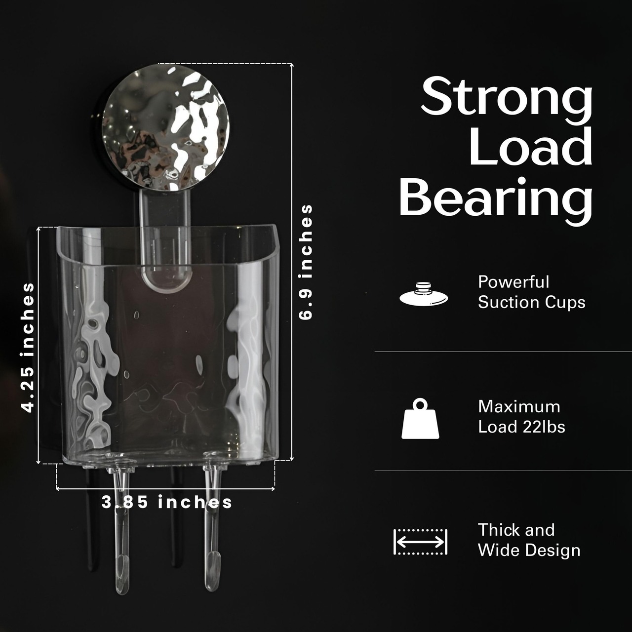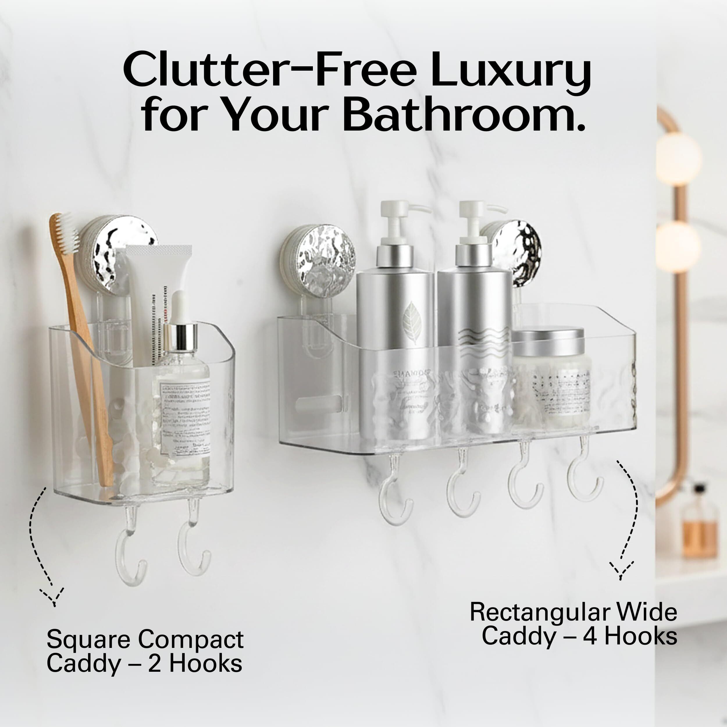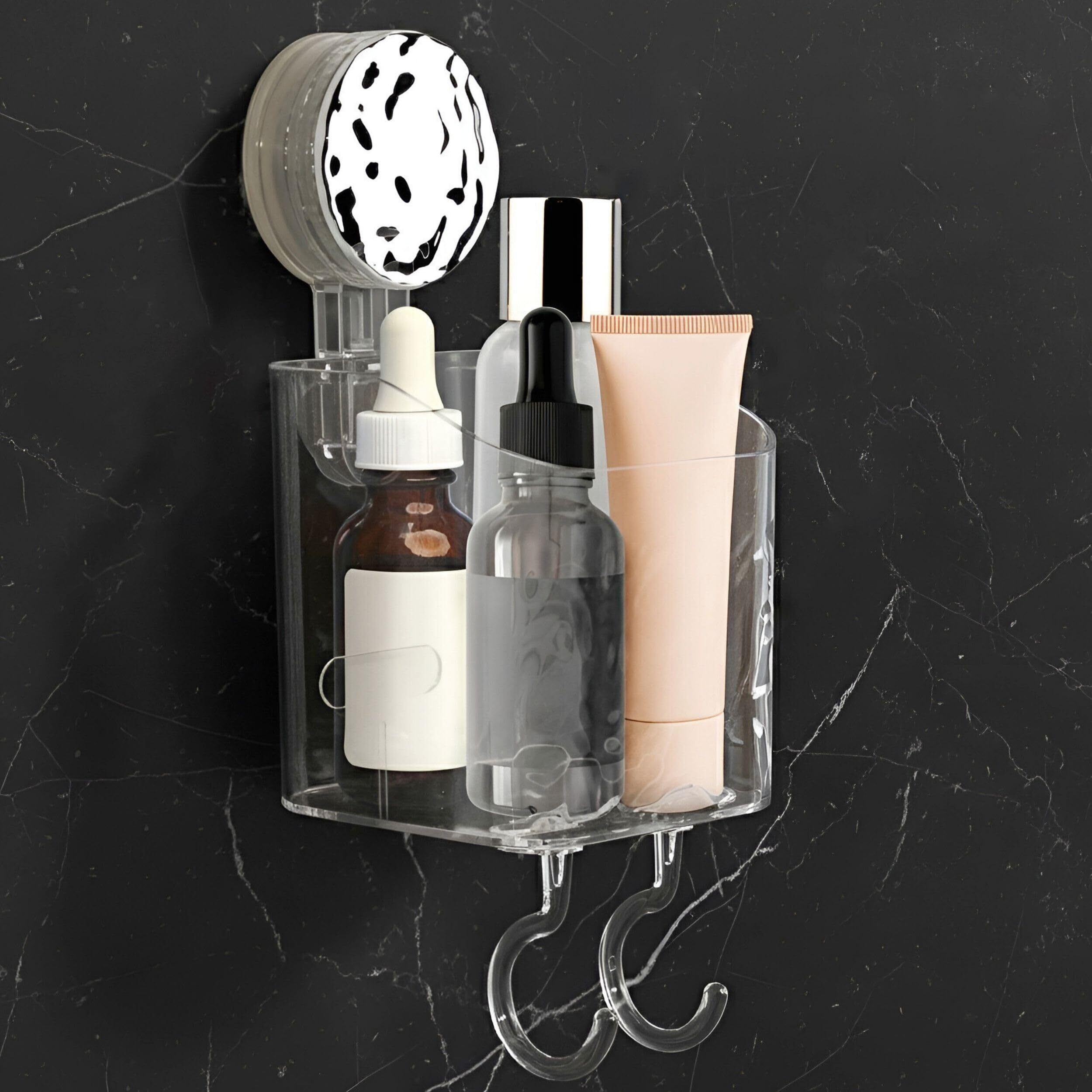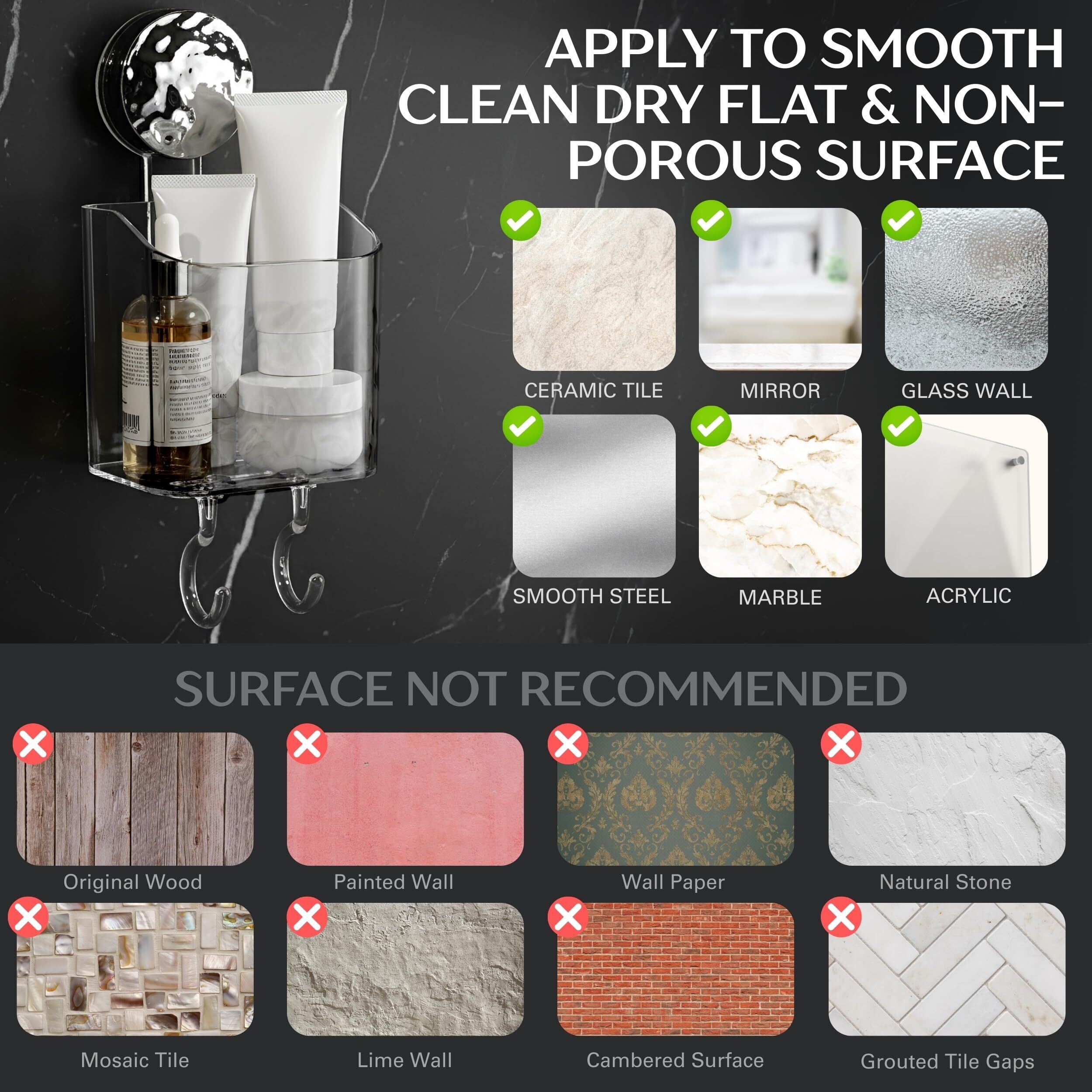 特徴:工具不要の取り付け:ドリル、ネジ、工具を使わずに数秒で取り付けられます。 【強力な吸引力】TPE吸盤と耐久性のあるABS樹脂製で、最大5kgまで保持できます。 防水&耐久性:水、油、湿気に強く、バスルームやキッチンでの使用に最適です。 中空排水設計:水の蓄積を防ぎ、アクセサリーをドライで衛生的に保ちます。 取り外し可能&再利用可能:簡単に取り外して再取り付けでき、跡を残さずに、賃貸人に最適です。 【多用途】歯ブラシ、カミソリ、歯磨き粉などを入れるのに最適です。 滑らかな表面で使えます:ガラス、タイル、鏡、ステンレス鋼に最適、テクスチャード加工や多孔質の表面には適していません。