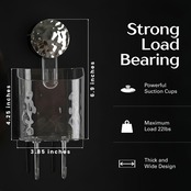 強力な吸引力。耐久性のあるABSとTPE素材で作られた吸盤は、ガラス、タイル、ステンレススチールなどの滑らかで非多孔質の表面に最大11ポンド(5kg)までしっかりと保持します。