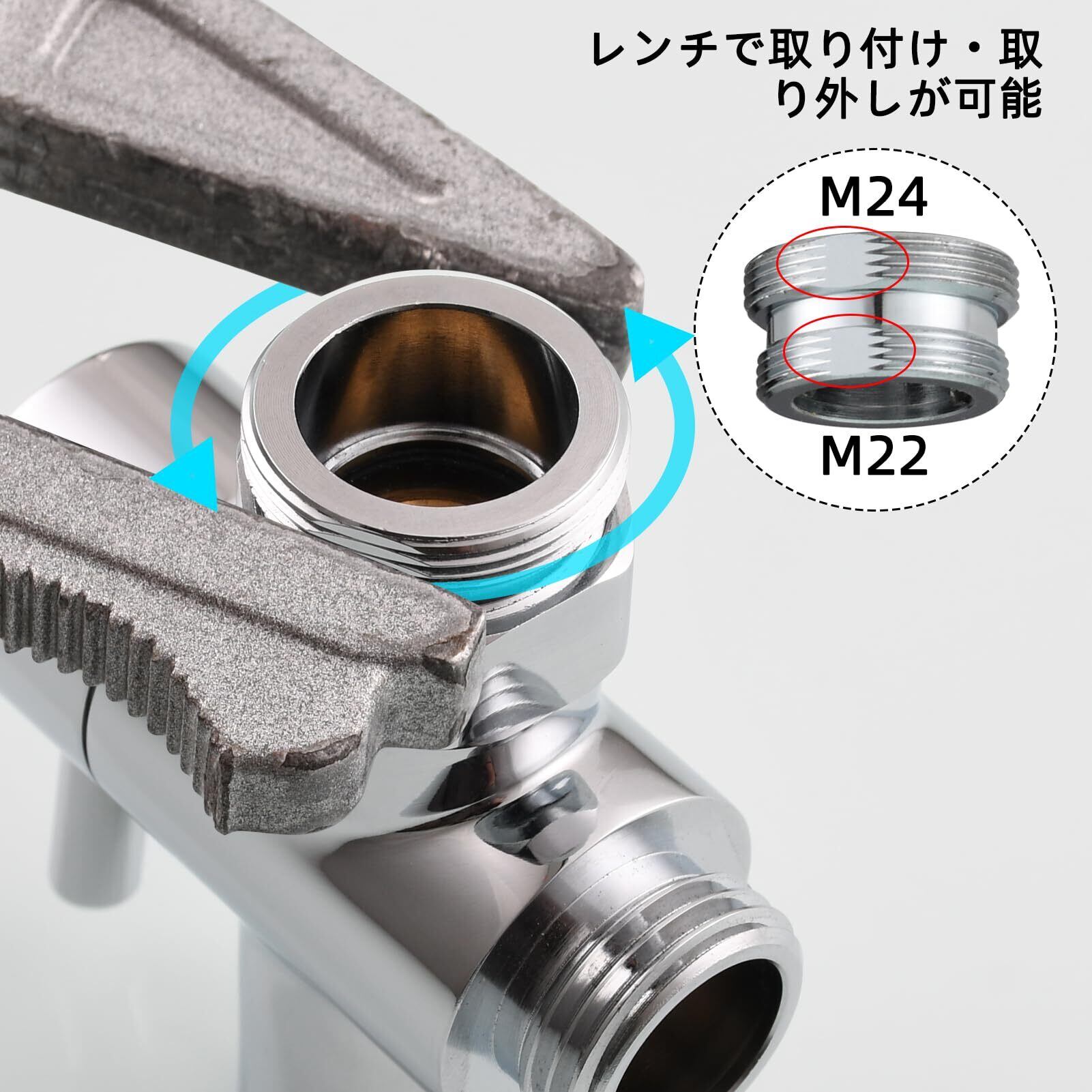 Ciencia 蛇口 分岐 2方向 真鍮 洗面台 蛇口 エクステンダー 交換部品 シャワーホースを接続 M22をM24に変換、クロム、SBA021C