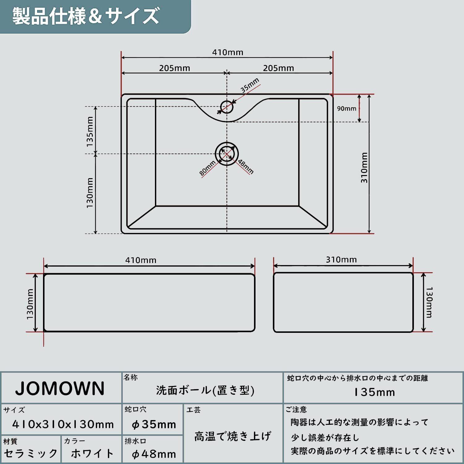 【高品質&掃除しやすい】:JOMOWNの手洗い 器は1280℃以上の高温で焼き上げております。 伝統工芸とモダンのデザインを組み合わせる白い洗面ボウルは洗面所の全体が清潔でシャープな印象を残しやすいです。洗面器の表面には釉薬が採用して、滑らかで光沢があります。表面が滑らかで汚れが溜まりにくいので、サッとふくだけで、きれいになります。