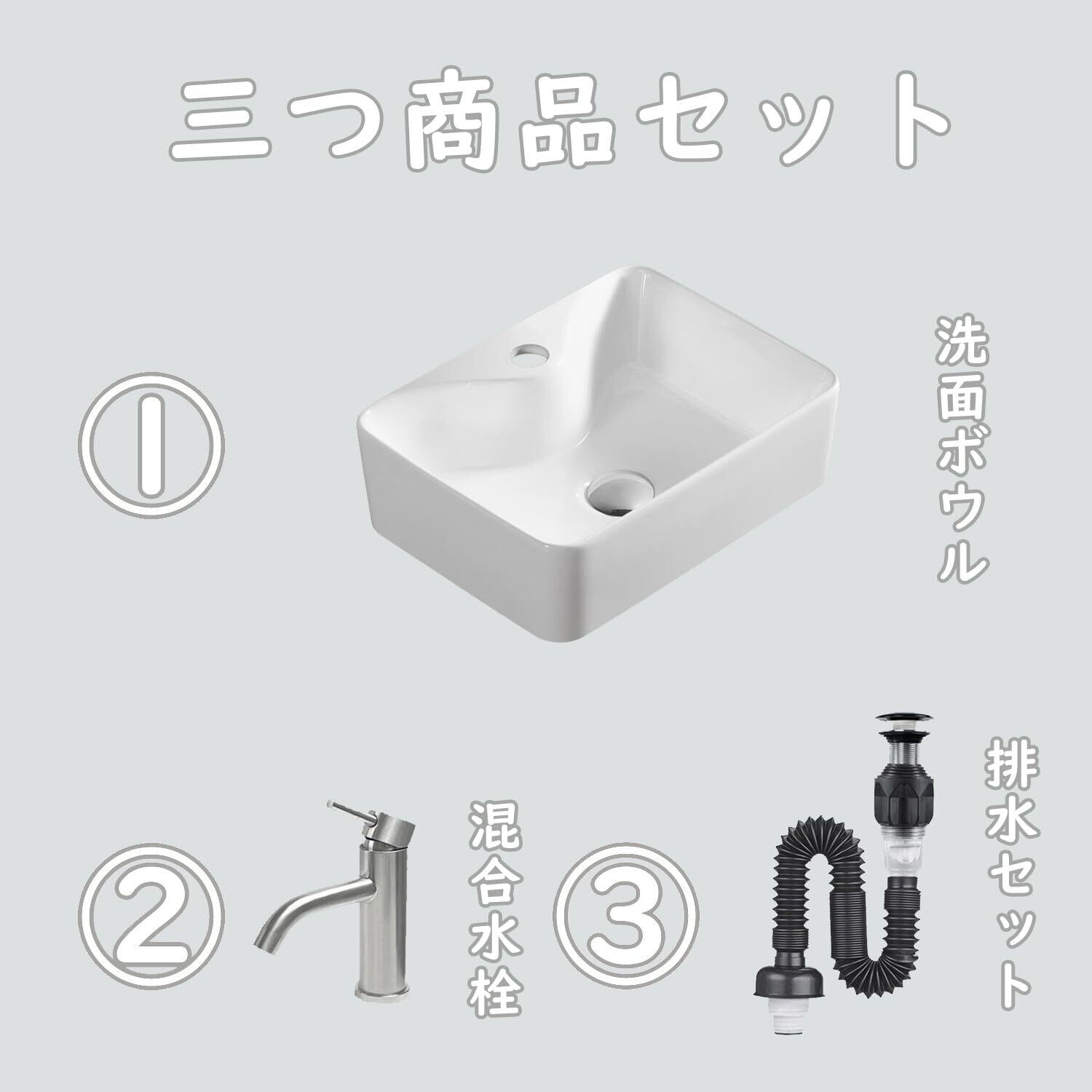 【洗面ボウルセット】:他社の洗面ボール 小型と比べて、JOMOWNの洗面ボウルセットは高級混合水栓とポップアップ式の防臭排水金具付いています。 蛇口の本体は高品質のステンレスを採用し、 耐久性に優れだ、腐食や錆びにも強く、お手入れも簡単です。排水金具は高品質なABSで、普通の排水金具より耐久性がずっと良いです。水漏れの心配はありません。