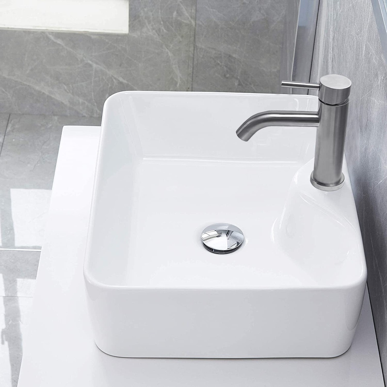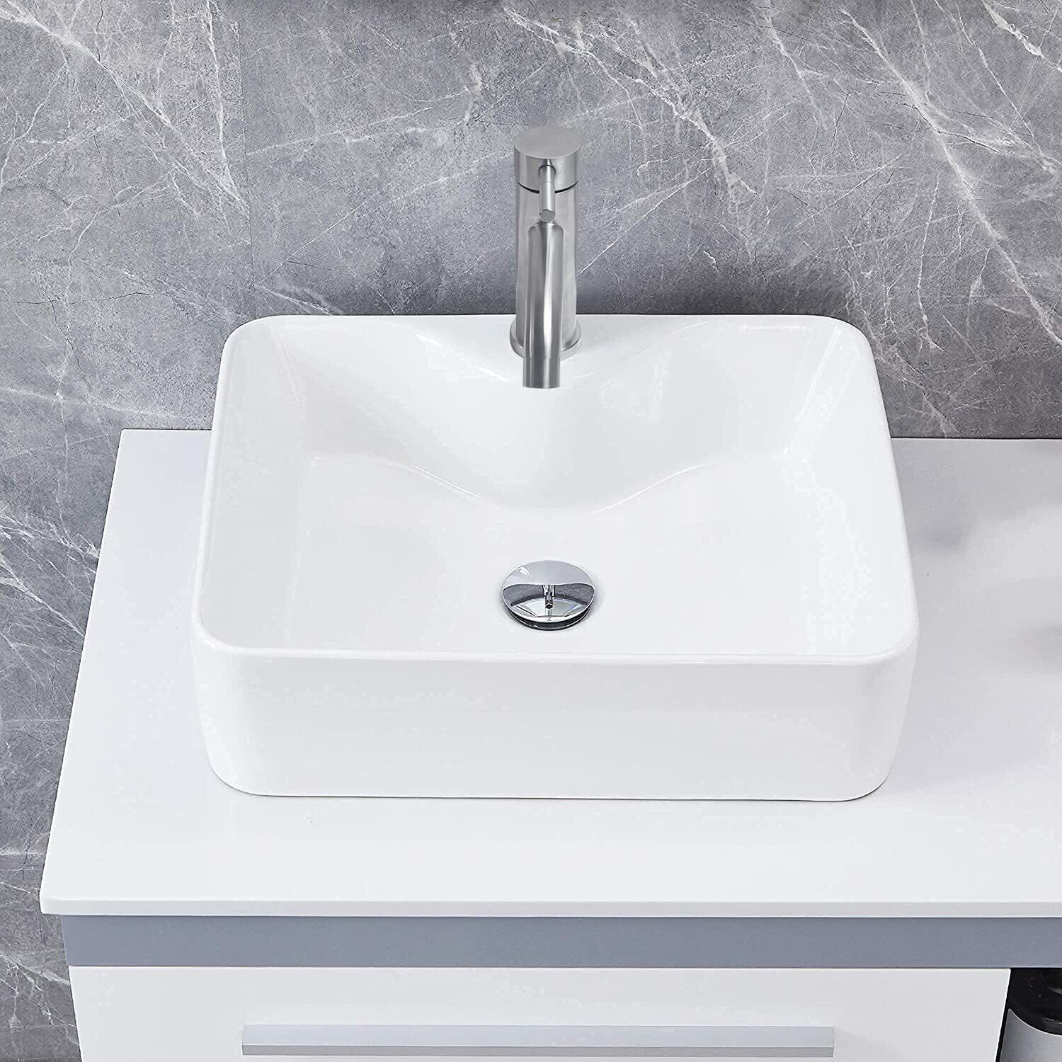 【特価セール】【JOMOWN混合水栓付き】 洗面ボウル おしゃれ 洗面台セット 置き型 洗面ボール 手洗い鉢 陶器 手洗い器 トイレ 手洗いボウル 410*310*130mm ホワイト 長方形3(41x31x13cm)