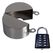 【防犯対策】水道の無断使用を防ぐ、南京錠付きステンレス蛇口ロックです。