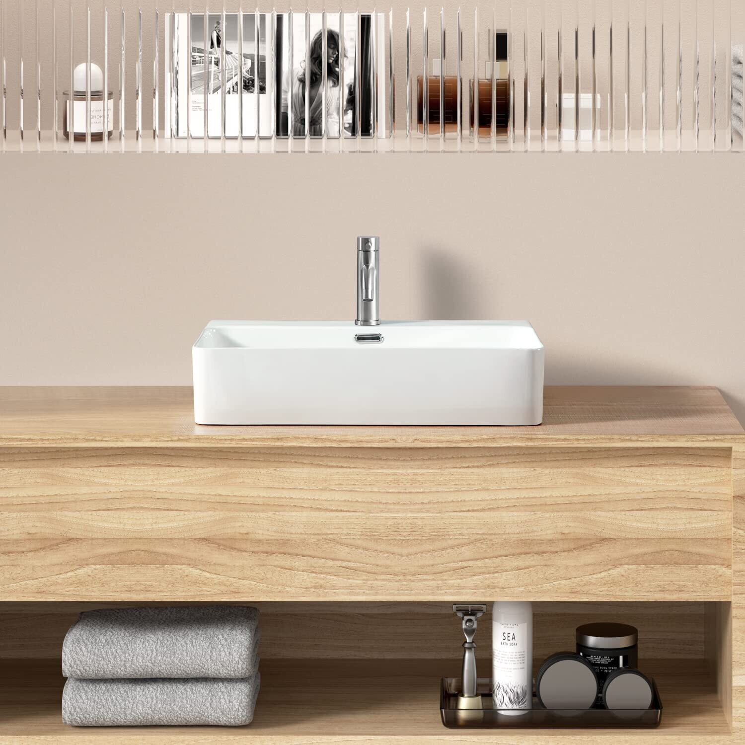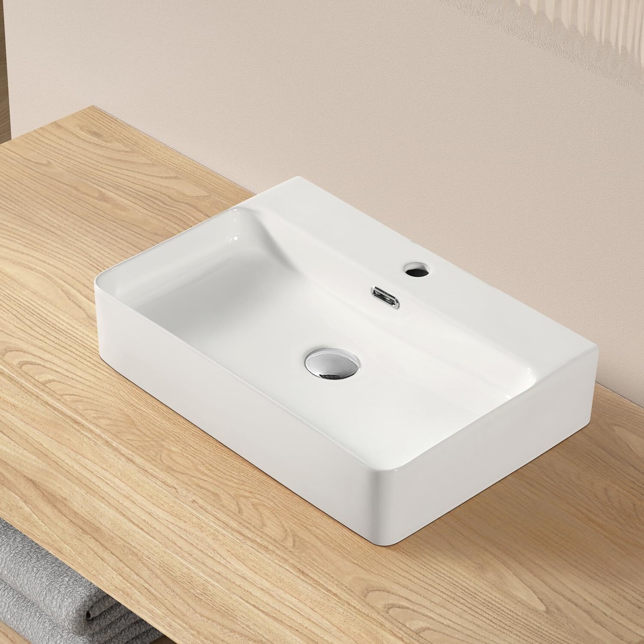 【Sトラップ排水セット付き】 大型 洗面ボウル おしゃれ 洗面台 置き型 洗面ボール 陶器製 手洗い器 手洗いボウル 610*425*130mm(長方形)