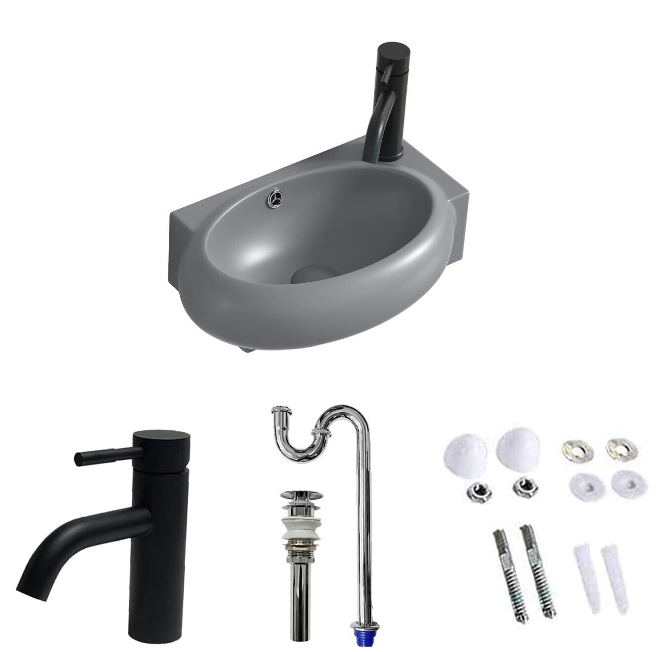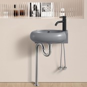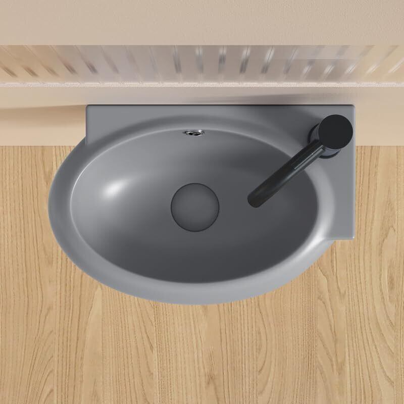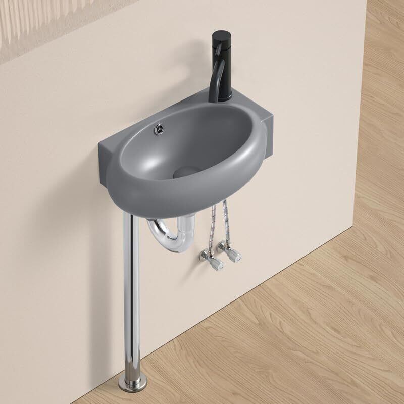 【Sトラップ排水セット付き】 手洗い器 グレー 手洗いボウル 壁掛け 425*285*150mm 壁付け型 手洗器 小型洗面ボウル 手洗い台 (右側)