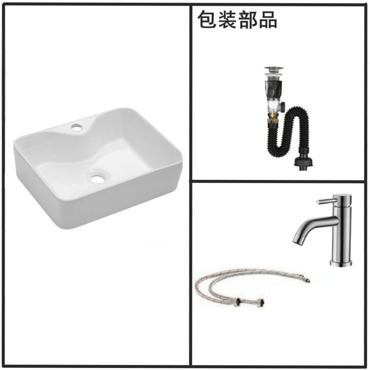 【仕様】材質:磁器。セット内容:40*30*13cm 洗面ボウル、蛇口(混合水栓)、排水栓。