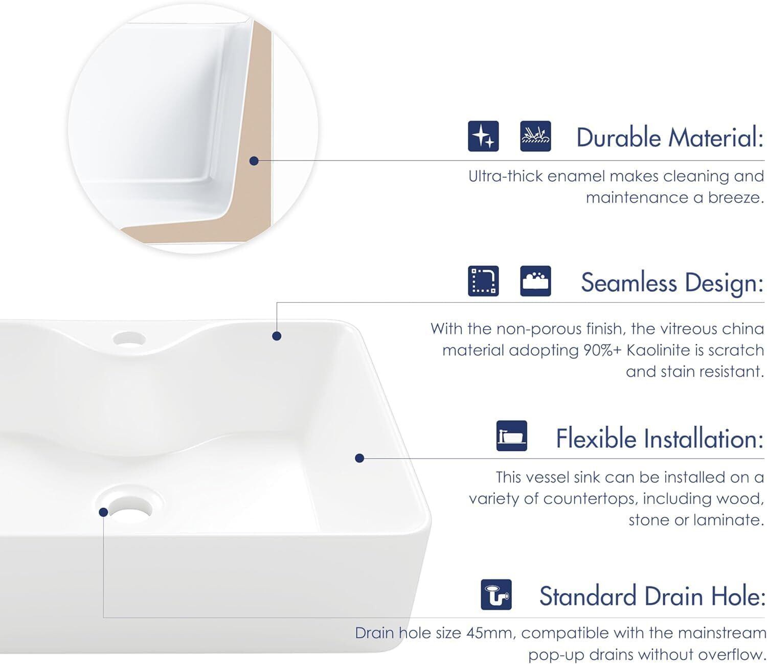 【数量限定】【排水セット付き】 洗面ボウル 洗面台 おしゃれ 陶器 豪華 手洗器 セット 手洗い器シンプル 置き型 長角型 洗面器 深型 (40*30*13cm)