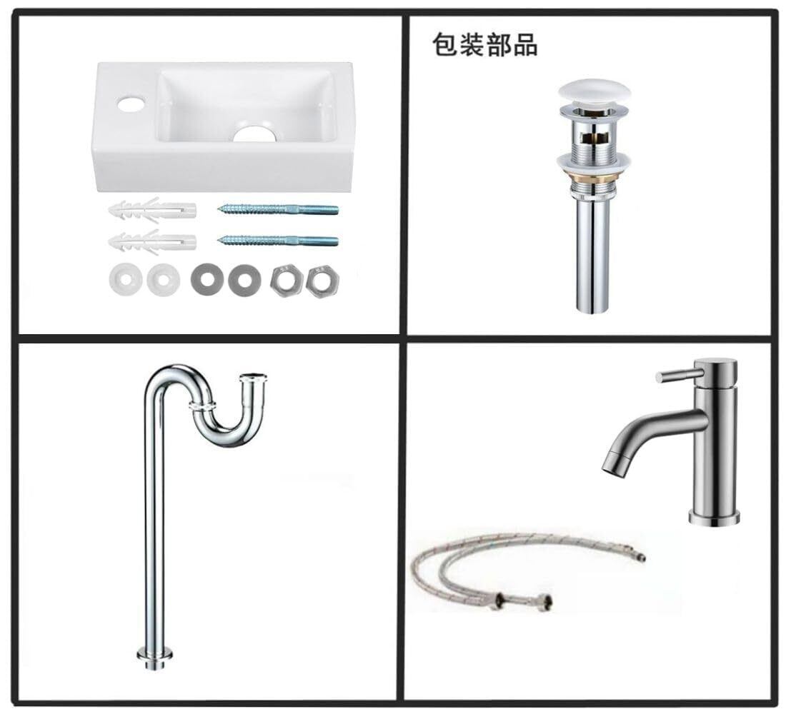 【仕様】材質:磁器。セット内容:洗面ボウル、蛇口(混合水栓)、排水金具、排水管。37*18*9【(蛇口右侧)白色