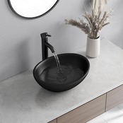 【排水セット付き】 洗面ボウル 陶器製 排水金具付き 豪華 混合水栓 洗面器 手洗い鉢 陶磁器 洗面台 トイレ おしゃれ (ブラック)