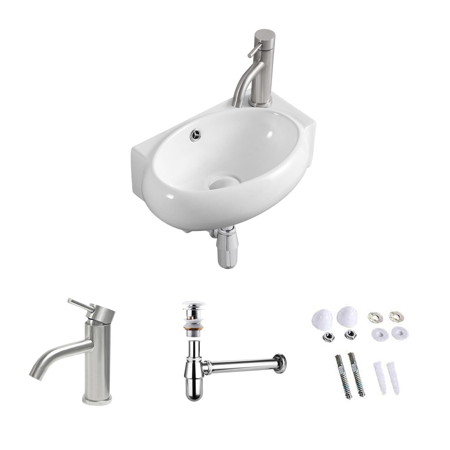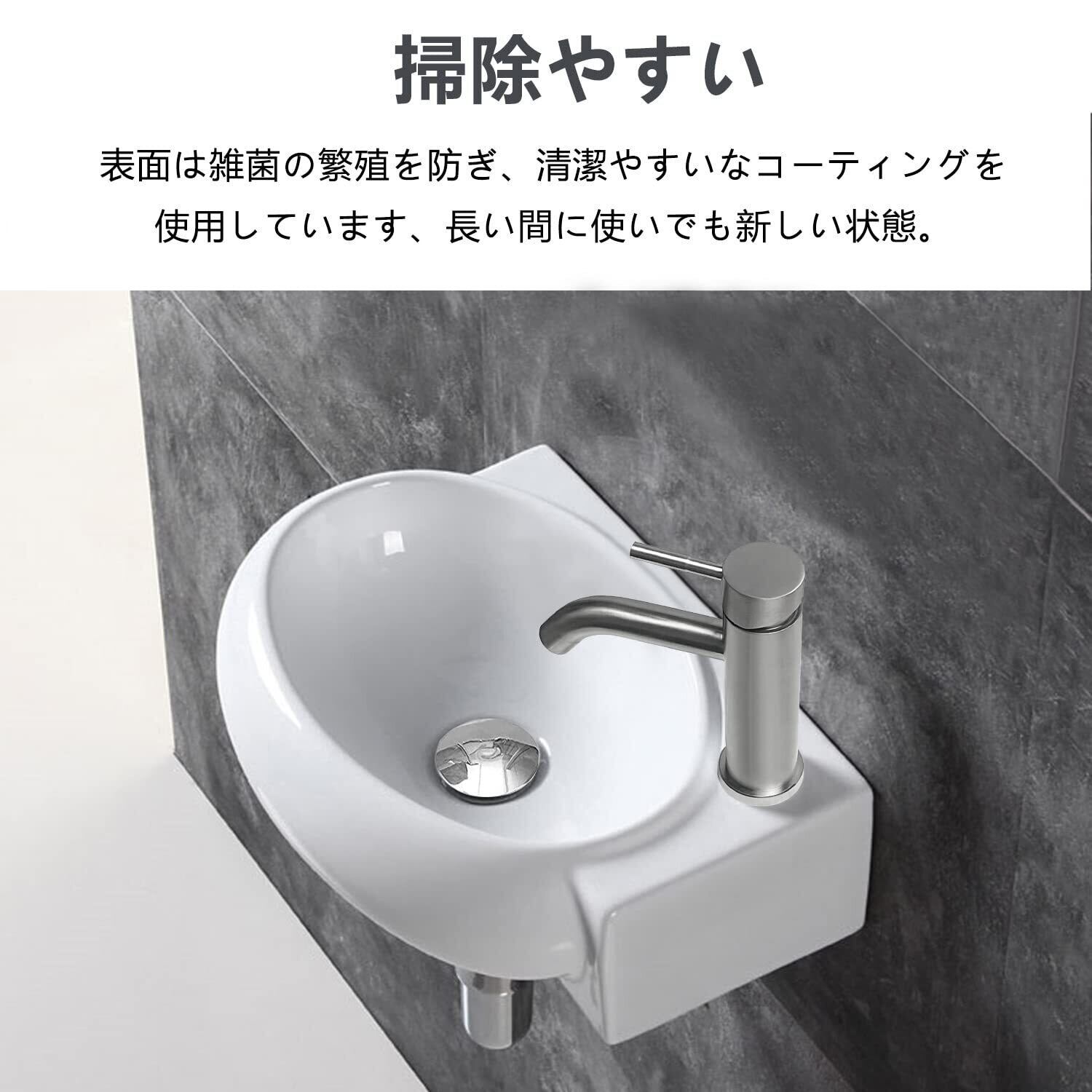 【手洗い器セット】:他社の壁掛手洗器と比べて、JOMOWNの手洗い器セットは高級混合水栓とポップアップ式の防臭排水セットが付いています。 蛇口の本体は高品質のステンレスを採用し、 耐久性に優れだ、腐食や錆びにも強く、お手入れも簡単です。排水金具も高品質なステンレスで、普通の排水金具より耐久性がずっと良いです。水漏れの心配はありません。