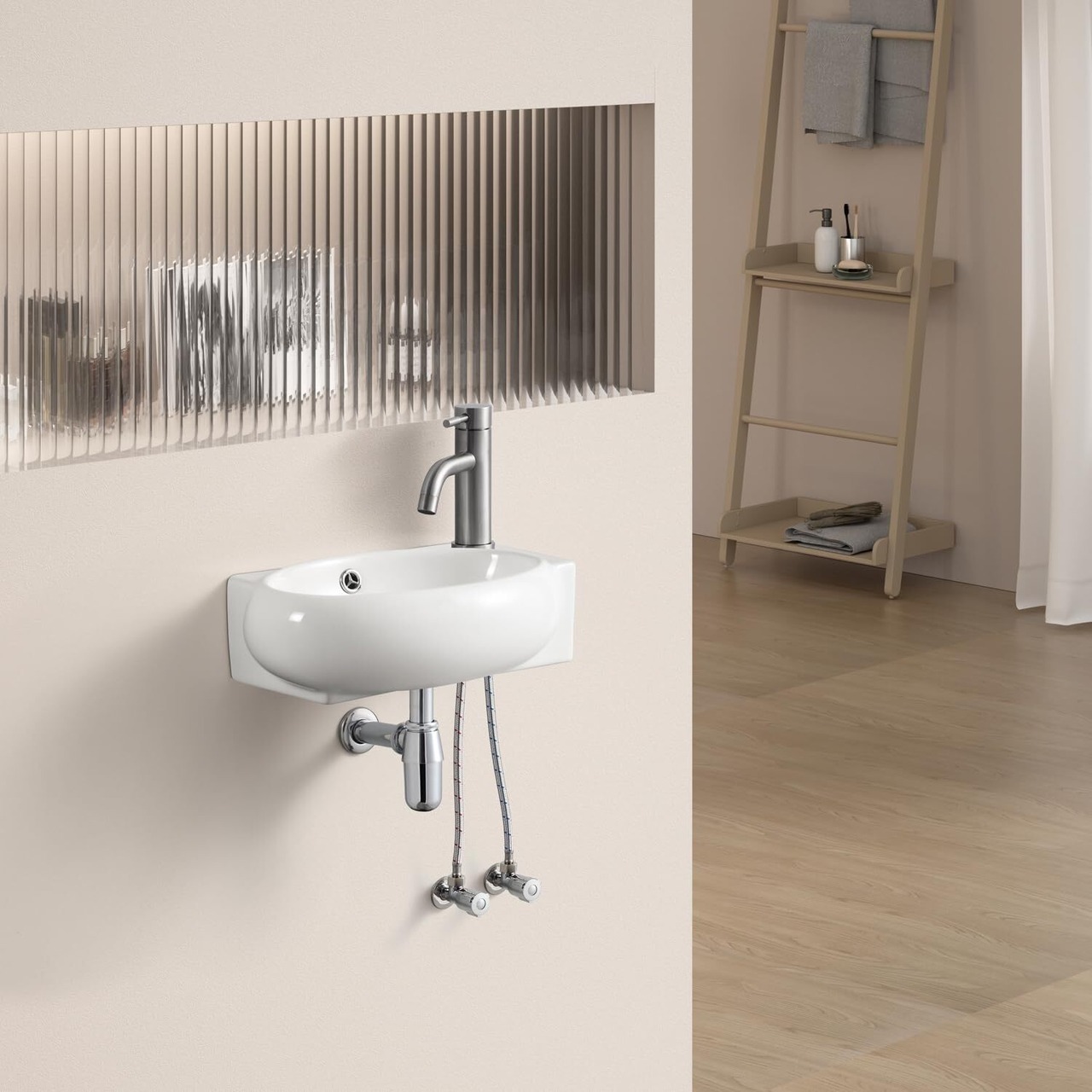 【数量限定】【混合水栓付き】 オシャレ 手洗い器 壁掛け 手洗器セット 小型洗面ボウル 洗面ボール 洗面台 壁付け型 手洗いボウル 陶器 手洗い台 425*285*150mm (右側)