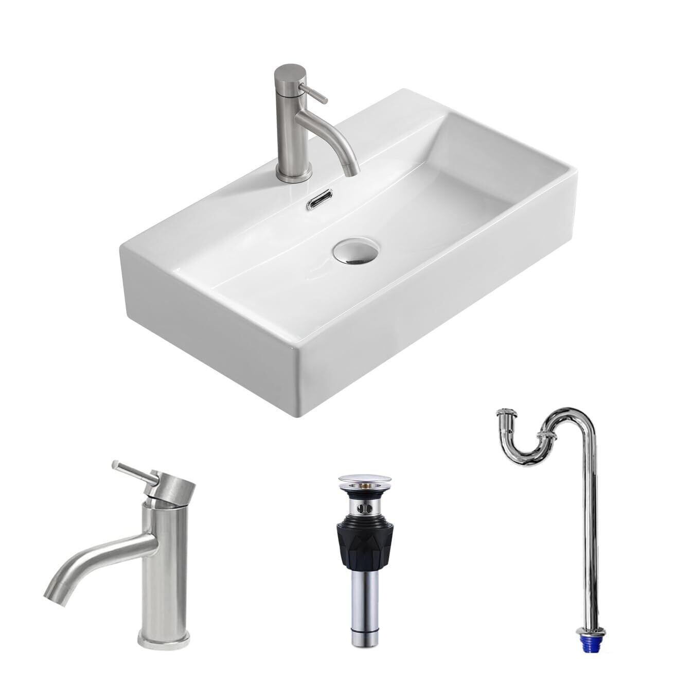 【在庫限り】【高級Sトラップセット付き】 洗面ボウル 置き型 洗面台 大型 605*360*130mm おしゃれ 洗面ボール 陶器 手洗い器 手洗いボウル 蛇口セット (長方形)