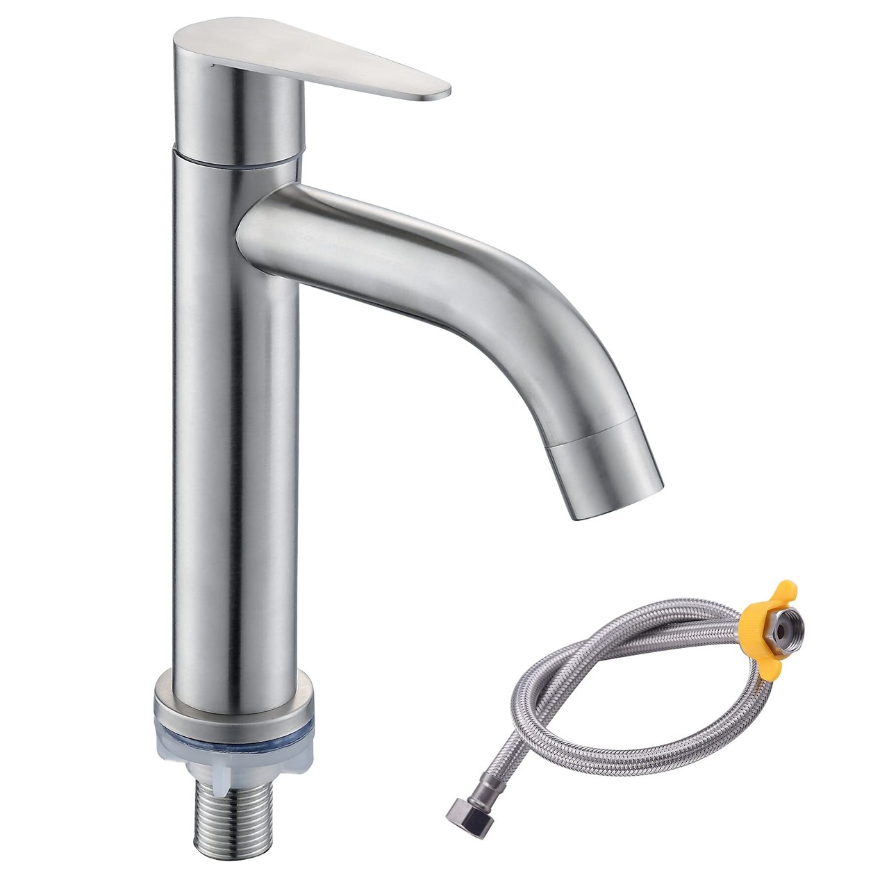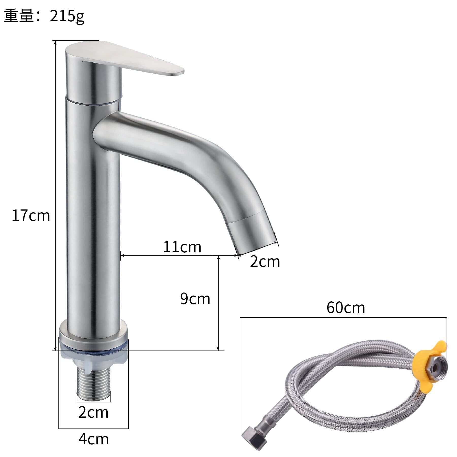 【新着商品】洗面台用 シングルレバー 立水栓 ステンレス製 単水栓 手洗いボウル 水道 蛇口 トイレ 洗面水栓 取り付けホース付き 洗面ボウル 水栓 洗面化粧台 節水 水道栓 2種類から選べる (A:17cm)
