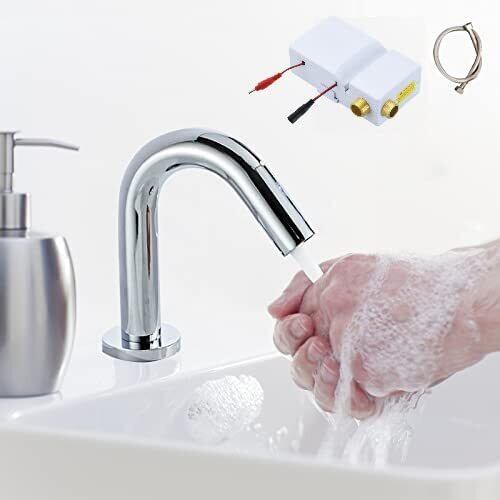 【限定セール】自動水栓 センサー水栓 単水栓 一体型 自動赤外線検知 自動蛇口 電池式 簡単で便利 非接触式 洗面蛇口 洗面所 浴室 トイレ 洗面台 病院 学校 日本語の取り扱い説明書付き (単水栓-HI19A(冷水))