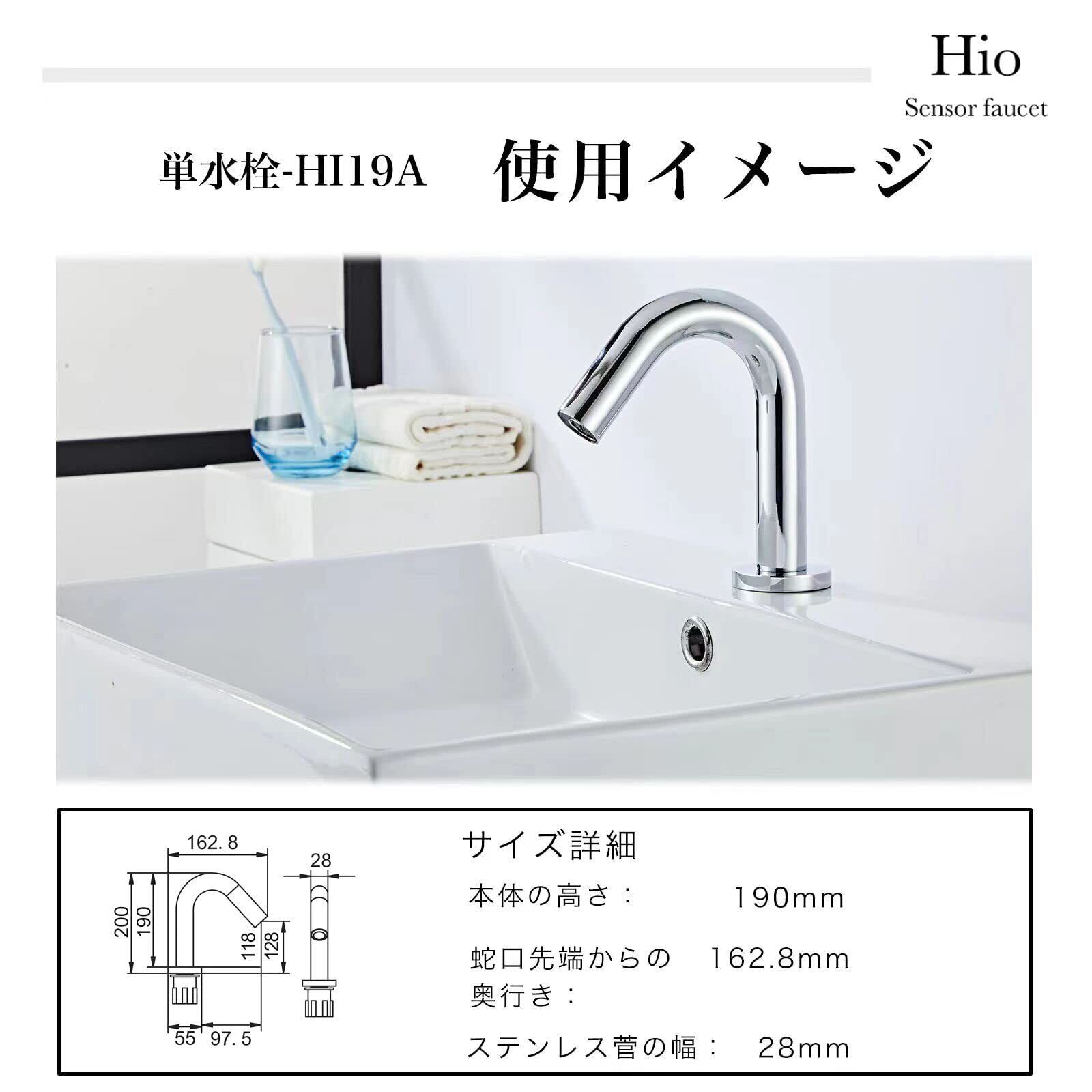 自動水栓 センサー水栓 単水栓 一体型 自動赤外線検知 自動蛇口 電池式 簡単で便利 非接触式 洗面蛇口 洗面所 浴室 トイレ 洗面台 病院 学校 日本語の取り扱い説明書付き (単水栓-HI19A(冷水))