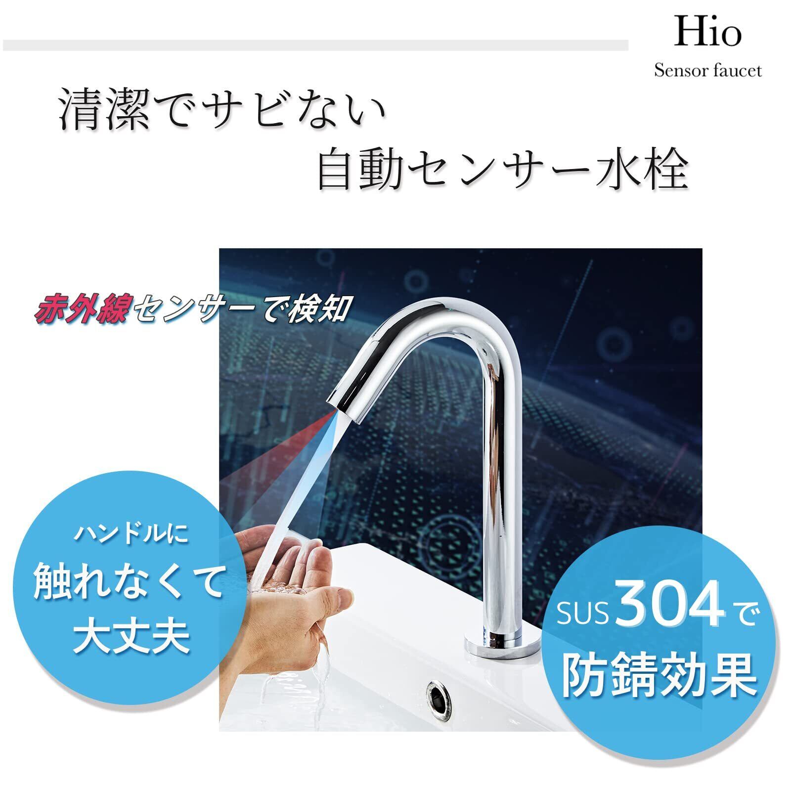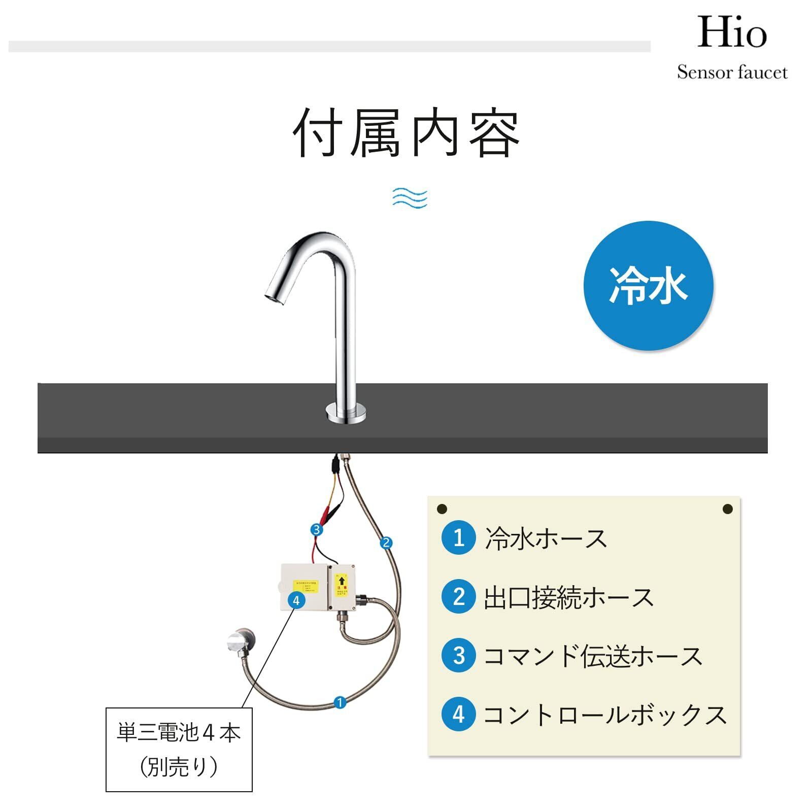 ・【Hio 自動センサー水栓】:赤外線センサーが人の手を検知し、ハンドルに触れることなく手を洗え、ハンドルに付着しているウイルスや細菌を気にすることなく、清潔です。また、センサーは4本の単三電池(別売)で作動します。センサーの検知範囲から手を離せば自動で水が止まり、無駄な水を流すことなく節水できます。