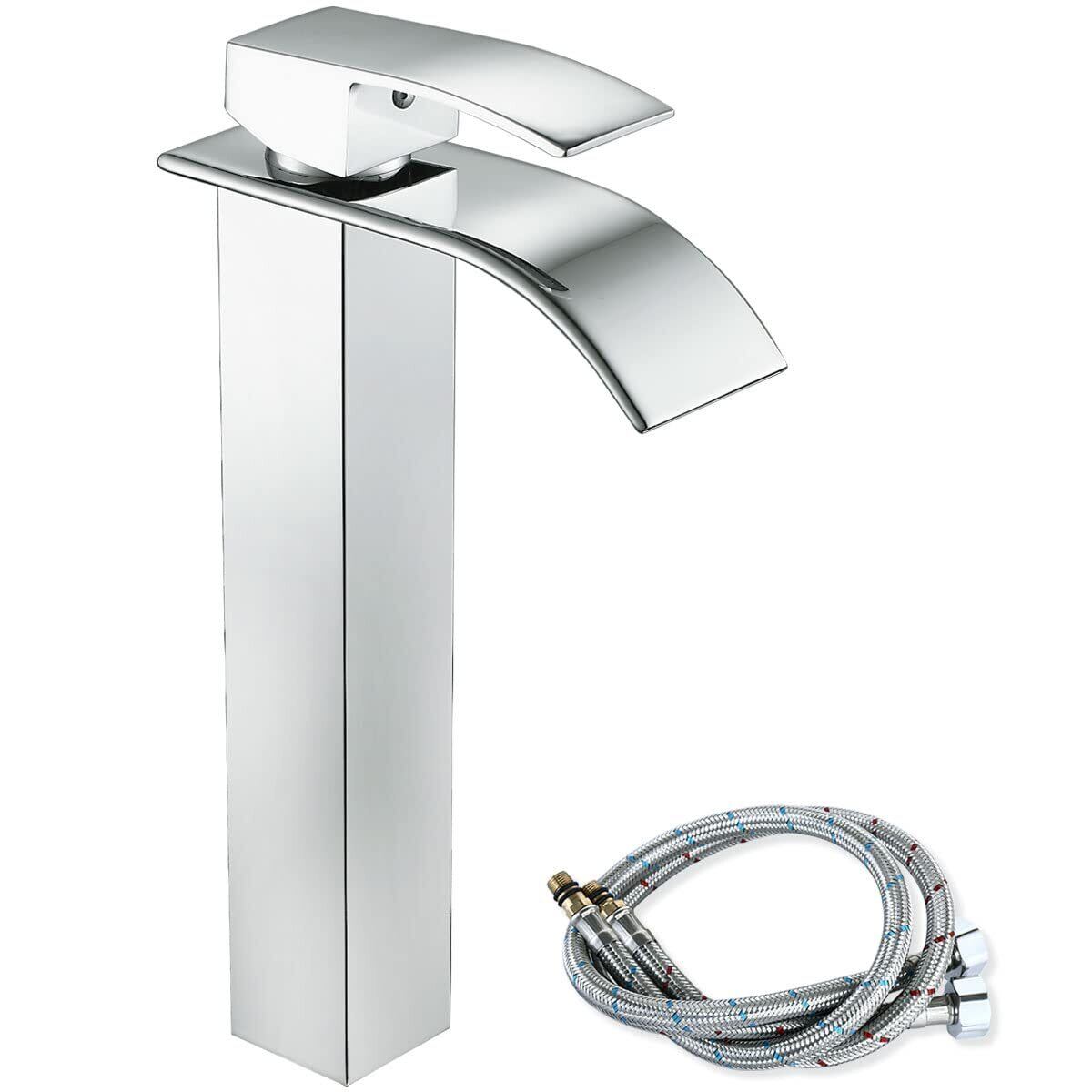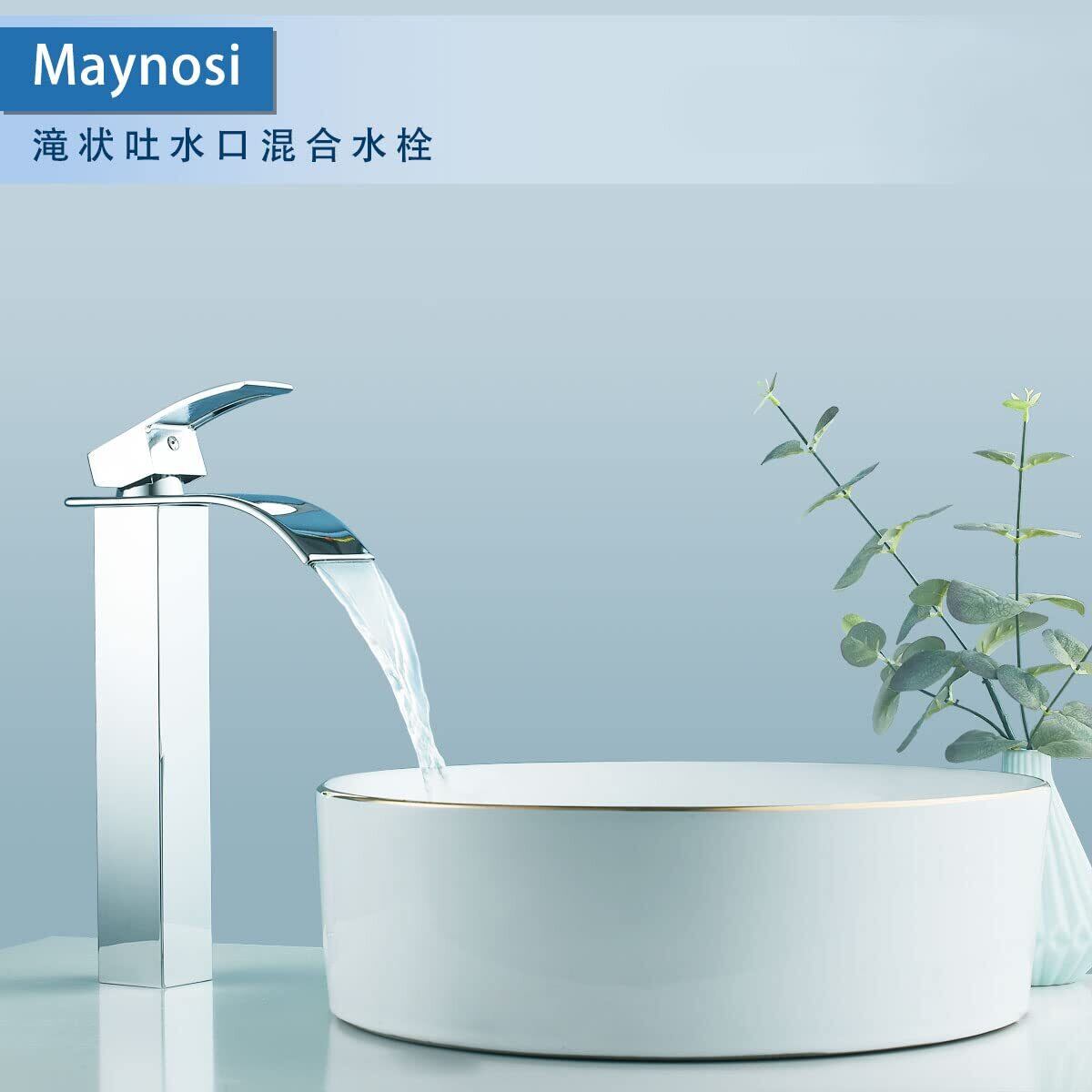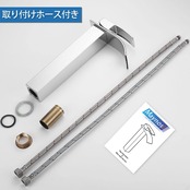 【数量限定】洗面水栓 洗面台蛇口 洗面用混合栓 シングルレバー 混合水栓 滝状吐水口 手洗いボウル用 水栓金具 取り付けホース付き 高295mm (クロム)