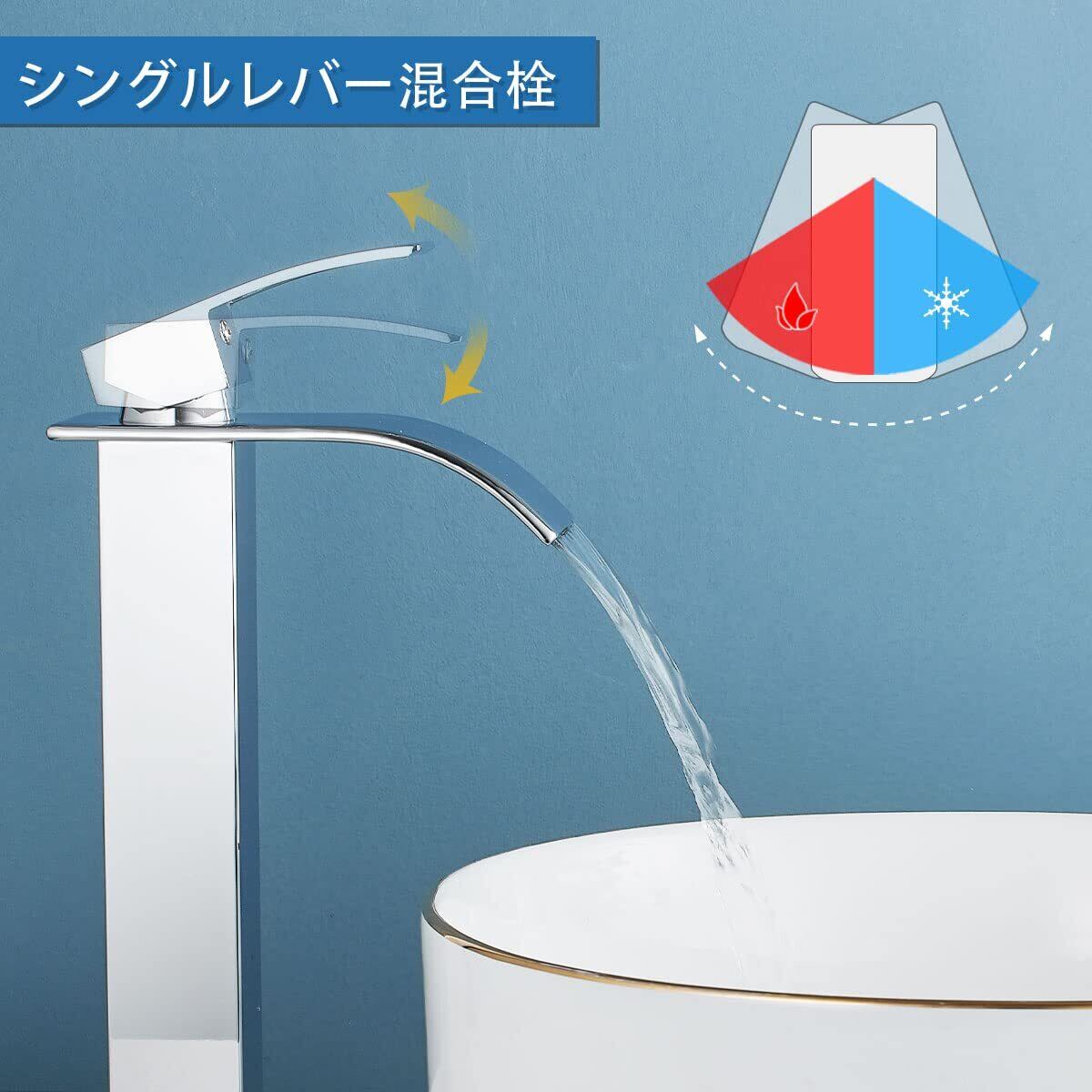 洗面水栓 洗面台蛇口 洗面用混合栓 シングルレバー 混合水栓 滝状吐水口 手洗いボウル用 水栓金具 取り付けホース付き 高295mm (クロム)