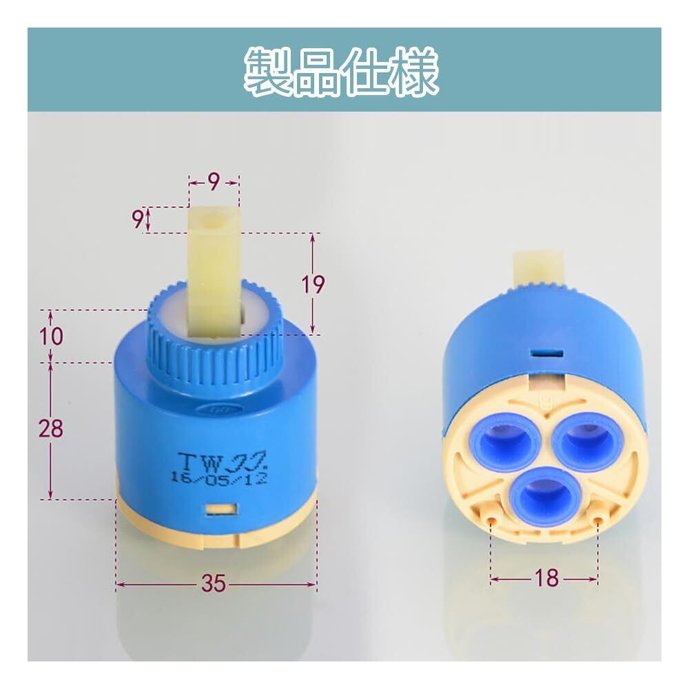 2個入りタップカートリッジ 水栓アクセサリー 混合水栓 シングルレバー用カートリッジ蛇口 水漏れ 補修用 水混合栓 蛇口バルブ 外径φ35