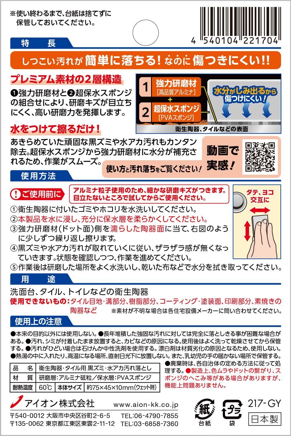 【新着商品】アイオン 衛生陶器・タイル用 汚れ落とし 1個入 水垢 黒ずみ 洗面台 トイレ タイル 水をつけて擦るだけ 傷つきにくい 日本製 217-GY