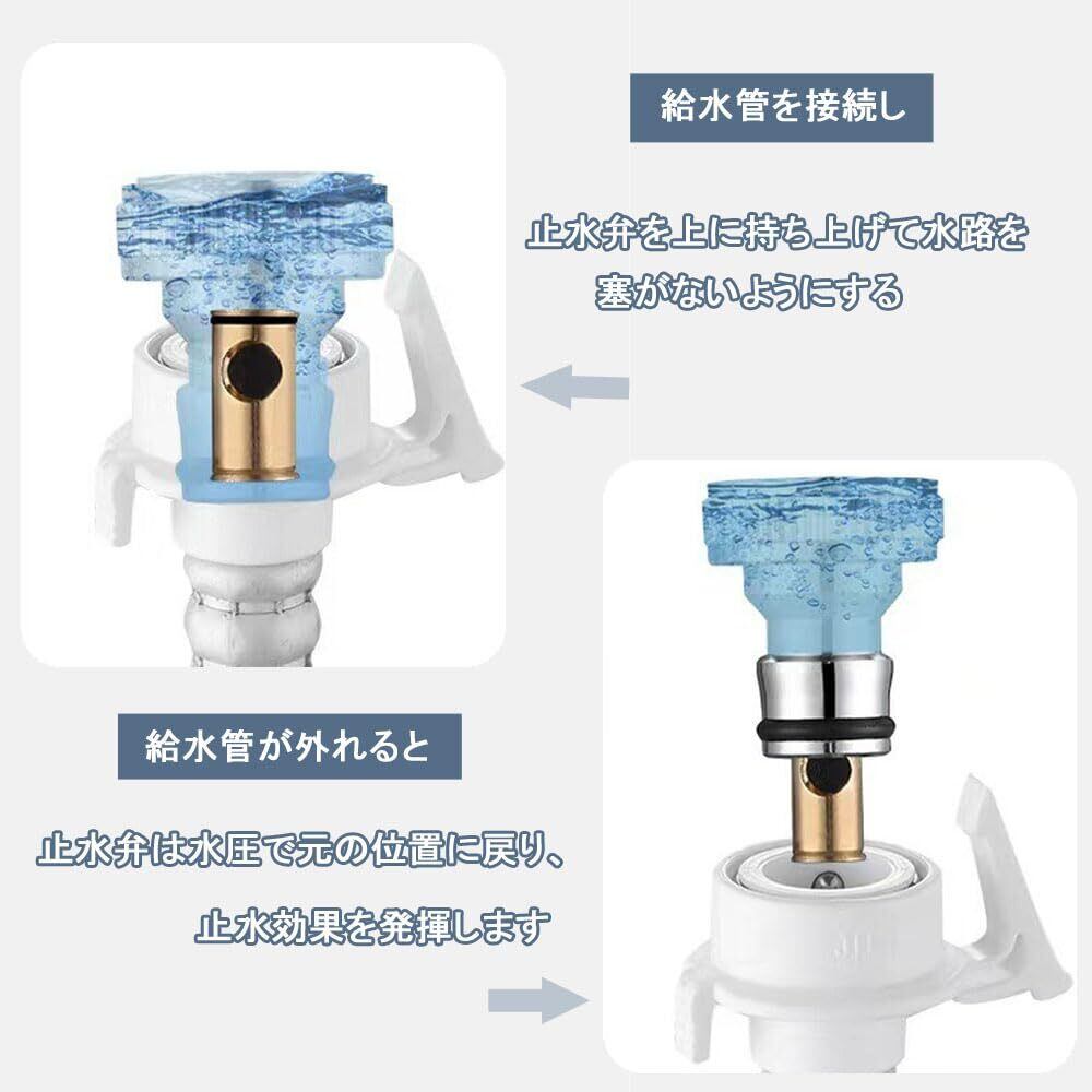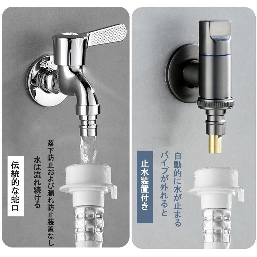 【自動止水性能】蛇口の厚くなったバルブ本体は安定性に優れ、破損しにくいです。内蔵の止水棒により、水道管が外れても自動的に水を止めます。丸みを帯びたハンドルはスムーズにオン・オフを切り替えることができ、ハンドルを90度回すだけで簡単に水の流れを止めることができます。