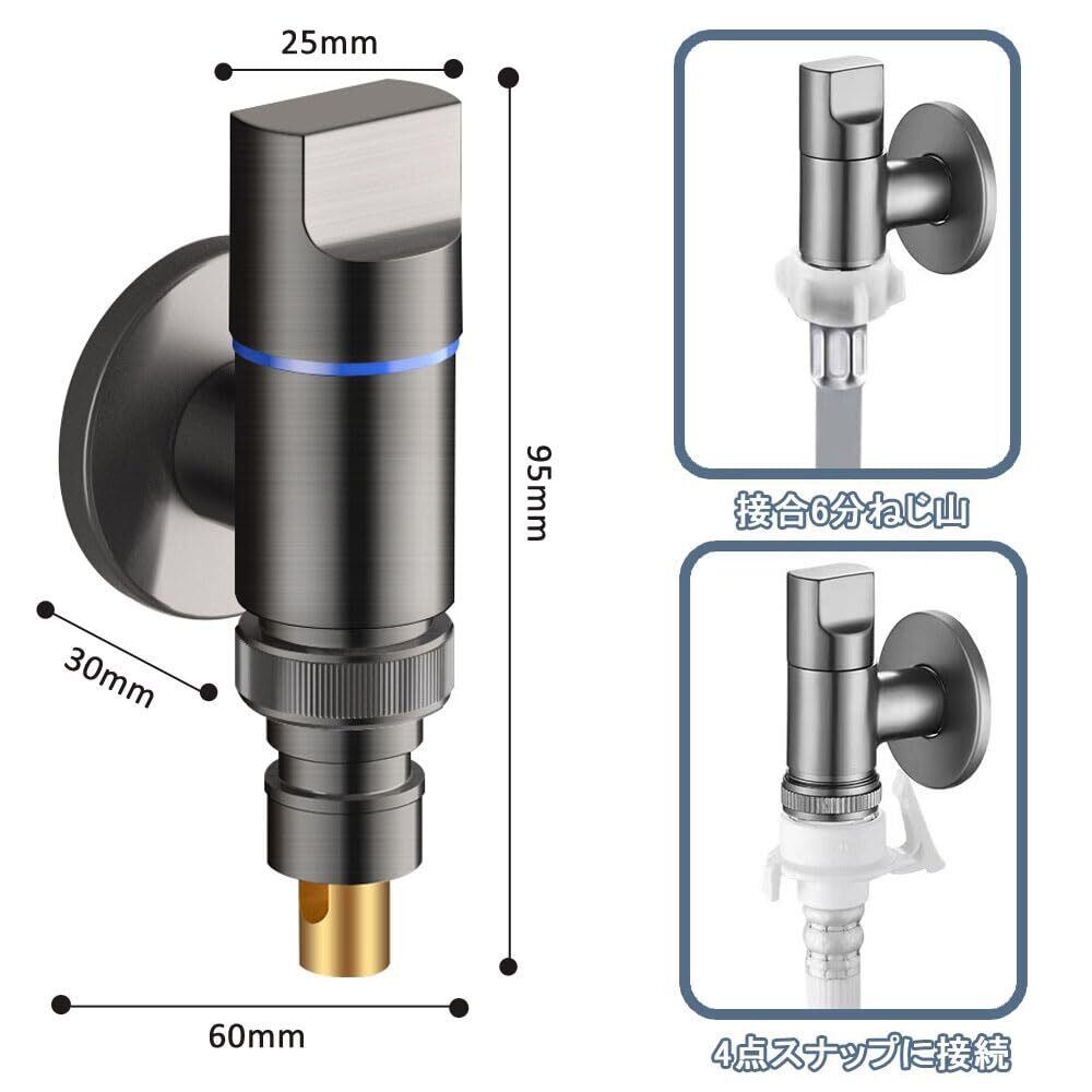 【幅広い互換性】この水栓金具は、4/6分割インターフェース、スナップインターフェース、ネジインターフェースと互換性があります。パッケージ内容: 洗濯機 蛇口*1個、シーリングテープ*1巻、漏れ防止ガスケット*1個。購入する前に必ず洗濯機のパイプのサイズを確認してください。