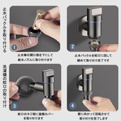 【取り付け簡単】洗濯機用水栓の取り付けは2つの部分に分かれています。蛇口を取り付け、ステンレス製の装飾カバーを蛇口のネジに差し込み、壁に向かって回転させて取り付けを完了します。止水栓を取り付ける際は、止水棒の開口部を下に向けて給水ノズルを取り付け、防水バックルを締めるだけで取り付け完了です。取り付け後、蛇口をオンにして正常に動作するかどうかを確認します。