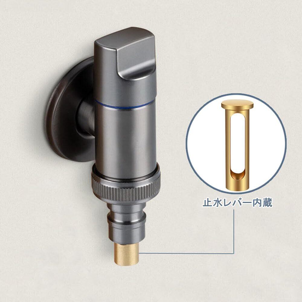 洗濯機用水栓 真鍮製 露出タイプ単水栓 緊急止水弁付水栓 逆流防止弁 露出タイプ 埋込タイプ 水道栓 スペースの節約 水栓金具 洗濯機 給水栓継ぎ手 水道蛇口アタッチメント 万能ホーム用 浴室/キッチン/ベランダ/ガーデン/屋外用 (ダークグレー)
