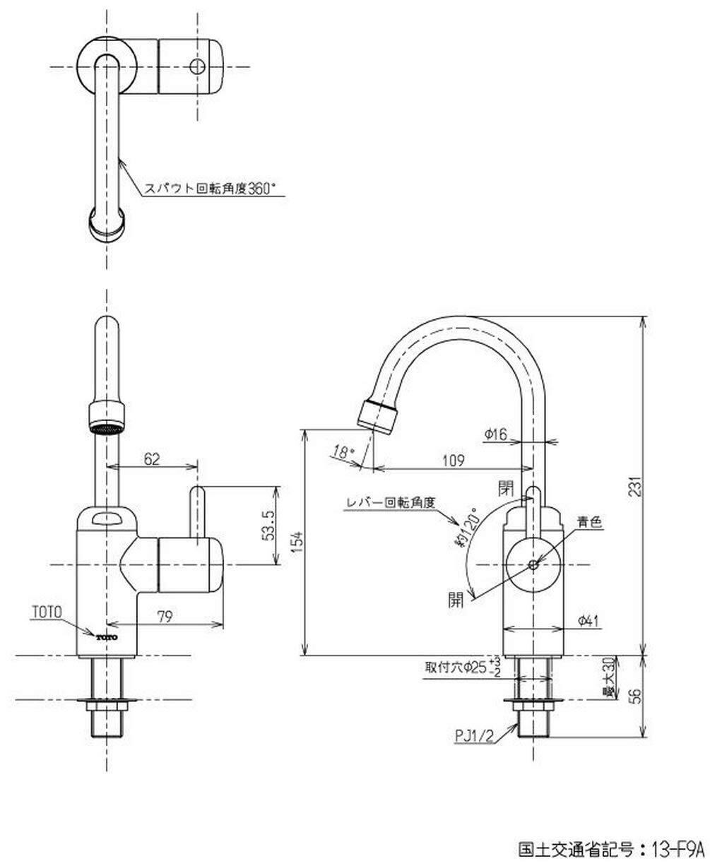 TOTO 単水栓(立水栓) ハイクラスシリーズ 一般地・寒冷地共用 TL155AFR (レバー式)
